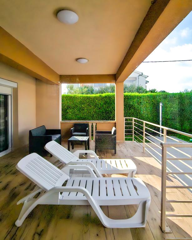 Godt, ophold i lejligheden med 2 senge og det var virkelig rigtig godt. Stedet var praktisk taget en helt ny, meget ren, stor terrasse, en stor, sikret have til børn. Placeringen er perfekt - 5 minutters gang i næsten alle retninger bringer dig til stranden, gamle landsby, havn, flere restauranter! Kun 2 minutters gang til bagerier, butikker, og lokale sælgere, der sælger deres egne frugter, grøntsager og vin. Dette sted er en juvel, og vært Valentino er en absolut gentleman, der er kommet ud af os for at byde os velkommen.