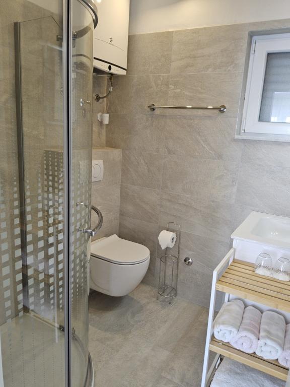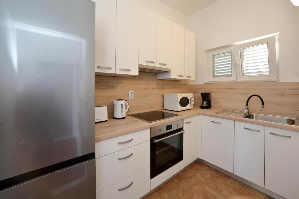 Adria Seaside House og Maribel Apartment tilbyder indkvartering med aircondition og smuk udsigt over havet, de nærliggende øer og uforglemmelige solnedgange. Gæsterne har adgang til en privat strand kun få skridt fra ejendommen, udstyret med liggestole, parasoller og en udendørs bruser med varmt vand - ideel til svømning, afslapning og solbadning hele dagen. Lejlighederne ligger 15 minutters gang fra byens centrum, hvor du kan finde butikker, bagerier og restauranter. Den historiske by Zadar med dens mange attraktioner ligger kun 15 minutters kørsel derfra. Et perfekt valg til en behagelig og afslappende familieferie.