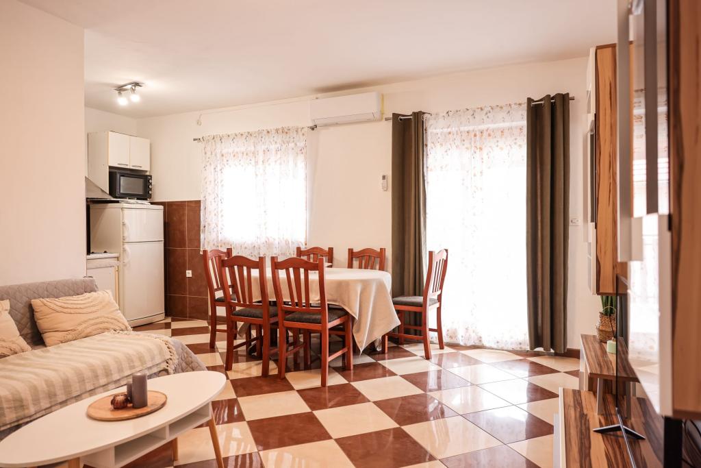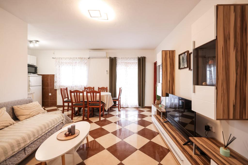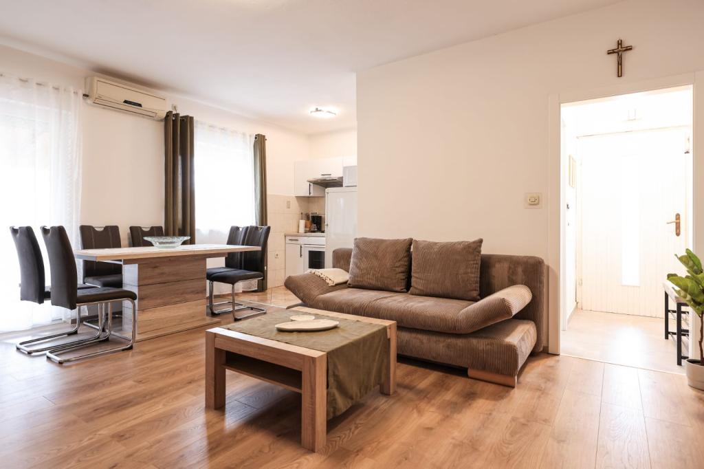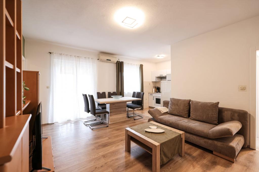 Fuldt udstyrede lejligheder ligger i umiddelbar nærhed af Zadar, i Bibinje, tredje række fra havet. Stranden ligger kun få minutters gang væk. Byens centrum med alle de tilhørende faciliteter ligger 500 meter væk, mens hovedbusstationen og lufthavnen er ca. 5 km væk. Der er også 4 nationalparker i nærheden, som kan nås med organiseret transport eller i bil. Bibinje er et sted med en bred vifte af tilbud. Caféer og restauranter med et rigt gastronomisk udbud strækker sig langs hele kysten. Også, kulturelle begivenheder finder sted i byen næsten hver dag, fra fiskeri festivaler til forskellige koncerter.