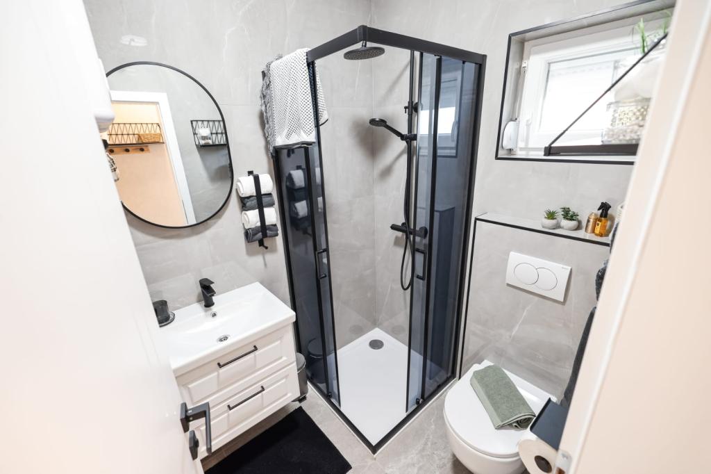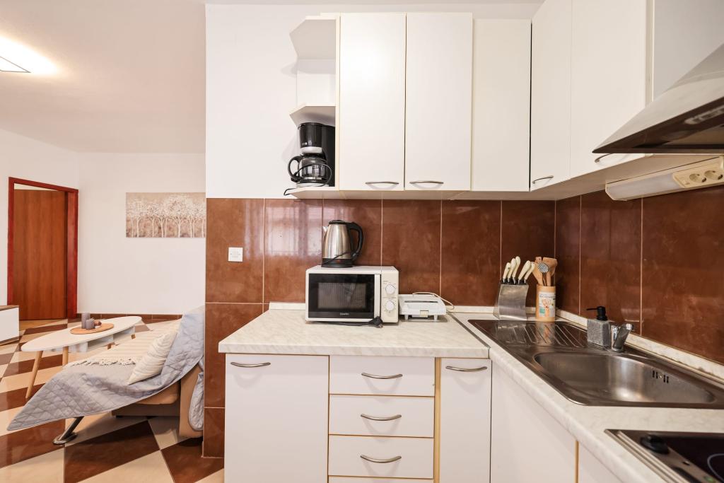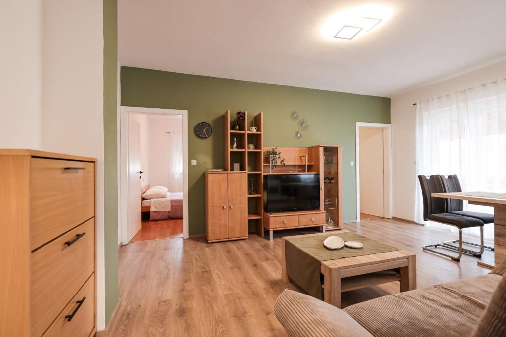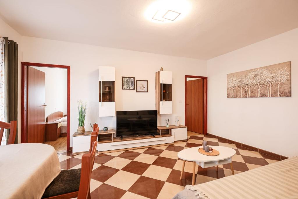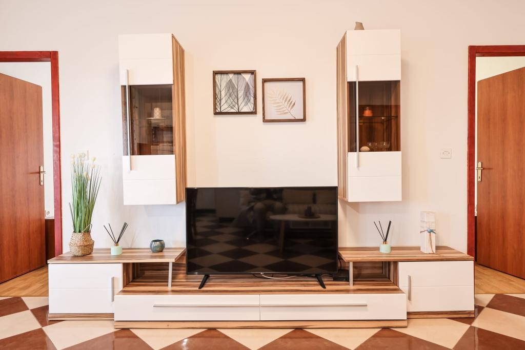 Fuldt udstyrede lejligheder ligger i umiddelbar nærhed af Zadar, i Bibinje, tredje række fra havet. Stranden ligger kun få minutters gang væk. Byens centrum med alle de tilhørende faciliteter ligger 500 meter væk, mens hovedbusstationen og lufthavnen er ca. 5 km væk. Der er også 4 nationalparker i nærheden, som kan nås med organiseret transport eller i bil. Bibinje er et sted med en bred vifte af tilbud. Caféer og restauranter med et rigt gastronomisk udbud strækker sig langs hele kysten. Også, kulturelle begivenheder finder sted i byen næsten hver dag, fra fiskeri festivaler til forskellige koncerter.