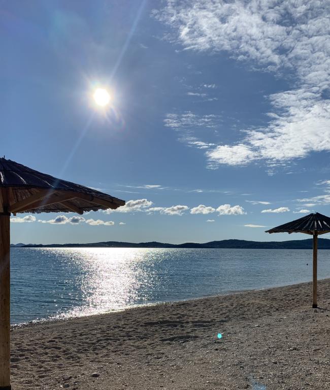 Lejlighederne ligger lige ved havet og stranden. Meget rene og velduftende. Ejerne er meget venlige og hjælpsomme, og gæsterne har adgang til liggestole og to cykler. Der ligger et supermarked 1.300 meter væk (6 minutters cykeltur). Der ligger et bageri omkring 200 meter væk, og centrum af Bibinje med sin livlige atmosfære og mange pubber ligger omkring 2 km væk. Zadar ligger 12 km væk. Bolt og Uber er tilgængelige i nærheden, hvilket gør det nemt at nå forskellige destinationer. Lufthavnen ligger omkring 10 km væk. Vi tilbragte 10 vidunderlige nætter i Suzy Apartment. Ved siden af lejligheden ligger en smuk strand med en hoppeborg til børn, udlejning af vandsportsudstyr, en burgerbod, et konditori og en strandbistro, der serverer drinks.