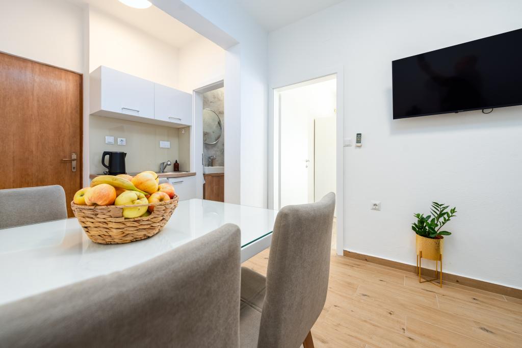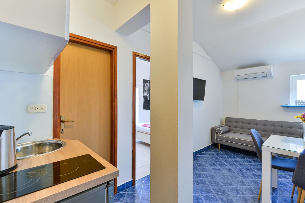 Lejlighederne Suzy ligger i turistområdet "Kraj Punta" i Bibinje. Lejlighederne ligger i første række fra havet, hvorfra der er en smuk udsigt over Adriaterhavet og de dalmatiske øer. Afstanden til den gamle by Zadar er 10 minutters kørsel, hvor der er flere store indkøbscentre. Inden for en radius af 30 km ligger der tre nationalparker: NP Paklenica, NP Kornati og NP Krka. Udflugter til nationalparken arrangeres også med afgang fra Bibinje eller Zadar. Alle boligenheder har aircondition, eget badeværelse, terrasse, satellit-tv og et udstyret køkken. Den nærmeste restaurant og butik ligger 150 m fra lejligheden. En cafébar og cocktailbar ligger 50 m væk. Stranden ligger 10 m fra lejligheden, og på stranden kan gæsterne leje en jetski, windsurfe eller spille beachvolley. Lejlighederne inkluderer gratis WIFI-internet, gratis parkering og private liggestole. For en behagelig sommerferie med solstråler og duften af hav, tilbyder Lejlighederne Suzy...