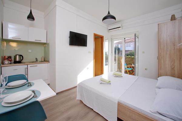 Studio med alt hvad du behøver til en dejlig ferie. Smuk strand foran lejligheden og meget venlig fru Suzy. Alle anbefalinger til en fredelig ferie.
