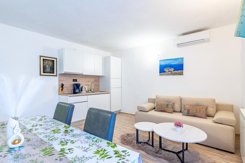 Beliggende i Bibinje nær Zadar, i en grøn oase kun et minuts gang fra stranden, tilbyder Villa Rudi sine gæster en afslappende atmosfære til et ideelt ophold. Villa Rudi tilbyder desuden 8 boligenheder, heraf 3 værelser og 5 lejligheder. Marina Dalmacija ligger få minutter fra villaen, og byen Zadar, som også er kendt for de smukkeste solnedgange, ligger kun 15 minutters kørsel derfra. Villa Rudi tilbyder gratis trådløs internetadgang og privat parkering. Alle boligenheder er udstyret med LCD-tv, klimaanlæg og den nyeste teknologi - tv-satellitter, der følger alle verdens programmer på alle sprog. Hver lejlighed har sit eget udstyret badeværelse, moderne køkken, køleskab og grundlæggende bestik og kaffemaskine. Under deres ophold kan gæsterne nyde en grill i haven og bruge vores liggestole gratis. Lufthavnen ligger kun 15 minutters kørsel fra ejendommen, ligesom indkørslen til motorvejen