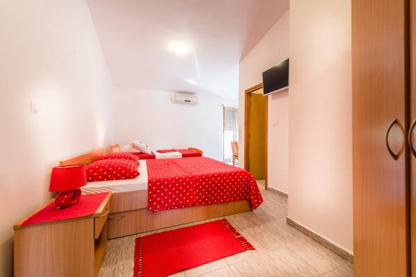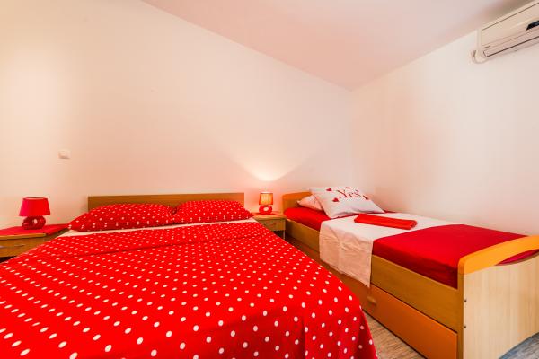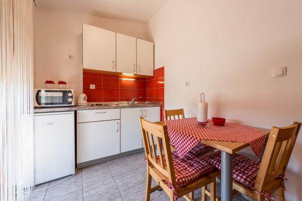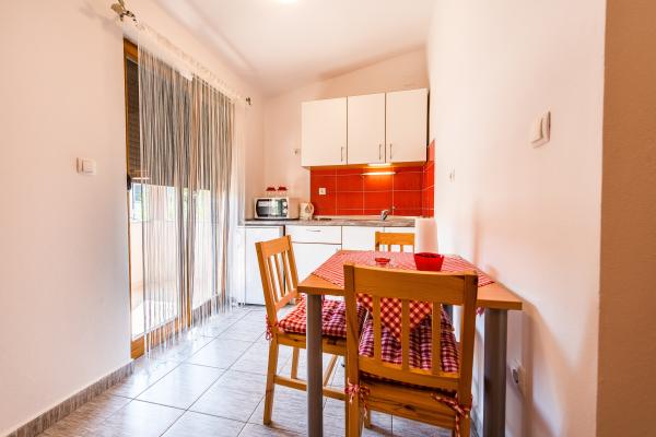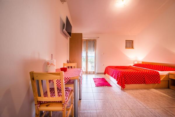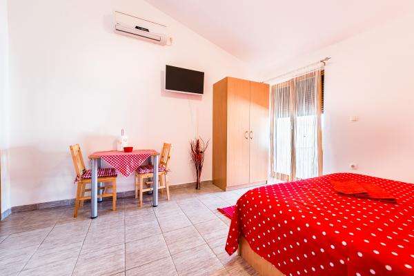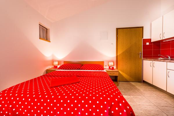 Vi tilbyder to nyindrettede studio lejligheder i forskellige størrelser. Hver af dem er udstyret med komplet køkkenudstyr, håndklæder, og hvis det ønskes, også en grill. Det er muligt at benytte haven. Lejlighederne har også tv med satellitkanaler og aircondition. Ferielejligheder Duje har terrasser med udsigt over haven, med en lille terrasse suiter har udsigt over havet. For din parkeringsplads. Havet er omkring 3 min. gå