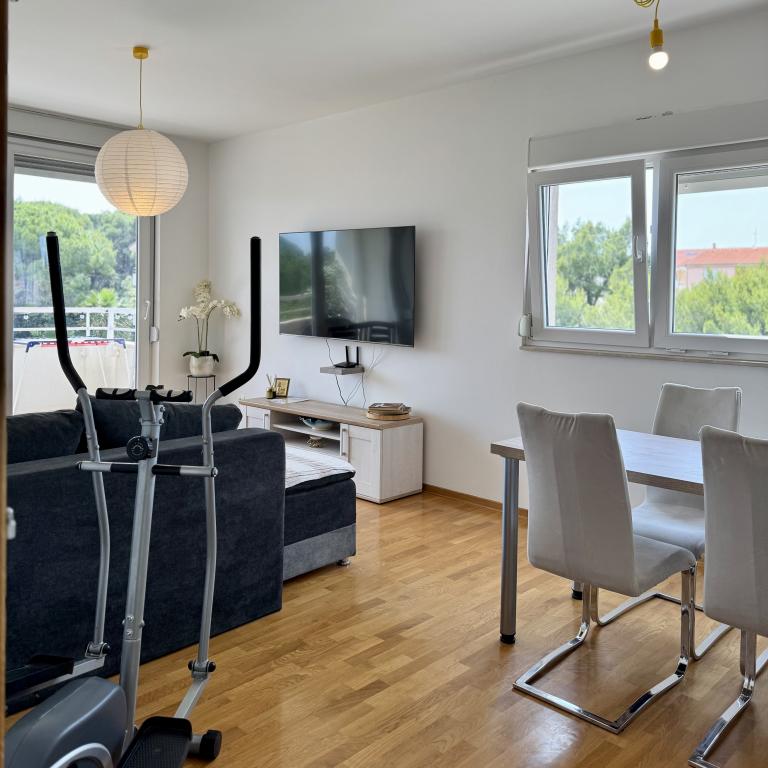 Den smukke lejlighed indeholder 2 rummelige værelser, et fuldt udstyret køkken, en komfortabel stue, et moderne badeværelse og en rummelig balkon til 4 personer. Beliggende på anden sal, kun 500 m fra kysten, tilbyder denne luksuslejlighed komfort og elegance. Denne moderne lejlighed på anden sal har alt hvad du behøver for et behageligt ophold: elegant design, kvalitetsmøbler og et fuldt udstyret køkken. Nyd at være tæt på havet, og efter stranden kan du slappe af på den rummelige balkon med en smuk udsigt...