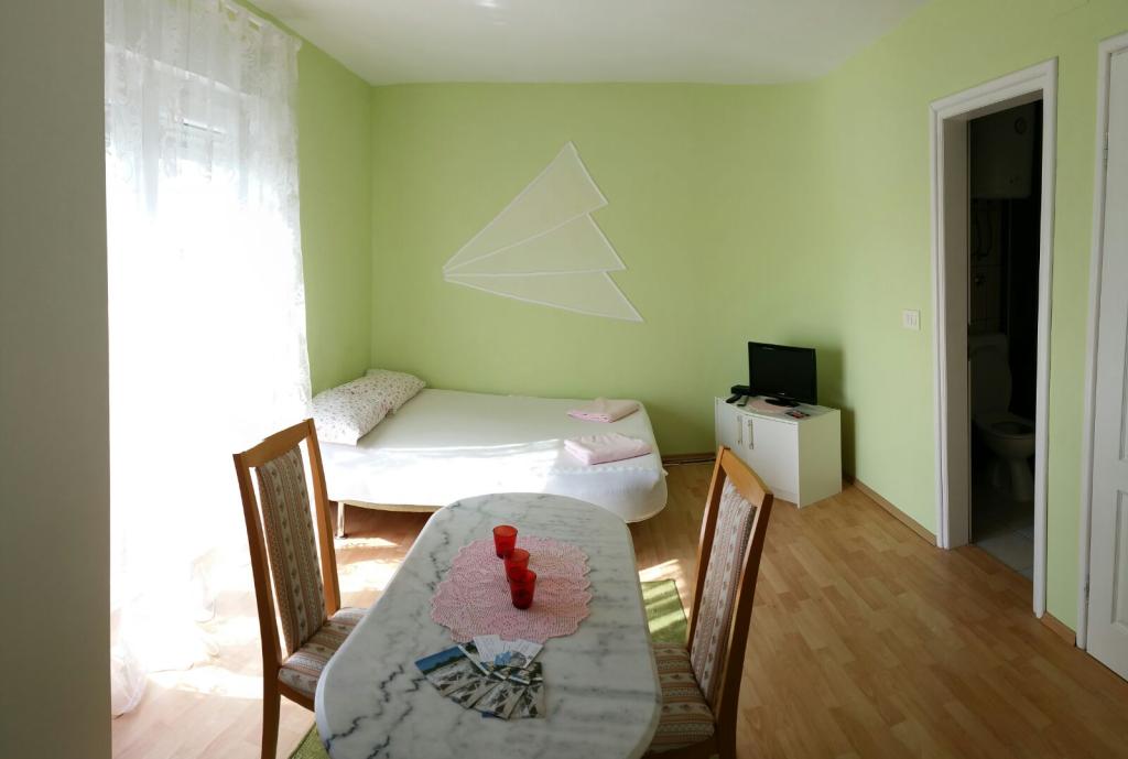 Huset er beliggende i en rolig del af Biograd, Kumenat bosættelse, ideel til ferie, grill i gården, parkeringsplads ved siden af huset, strande og butikker i nærheden, kun få minutters gang væk.