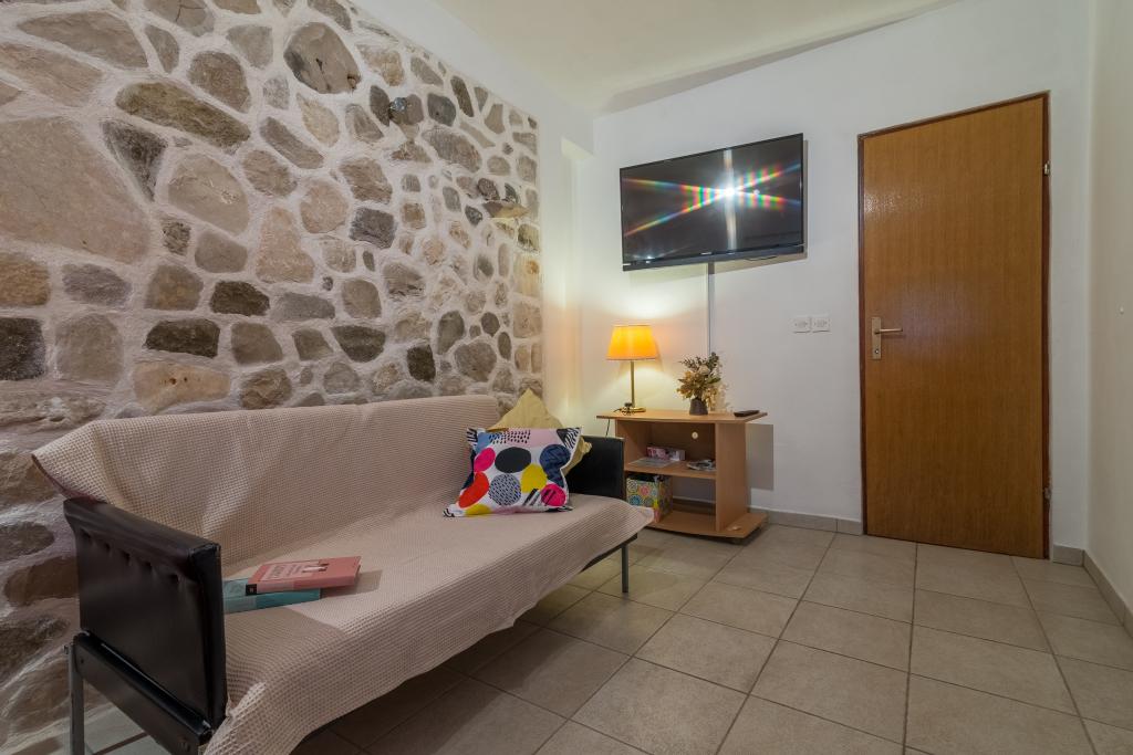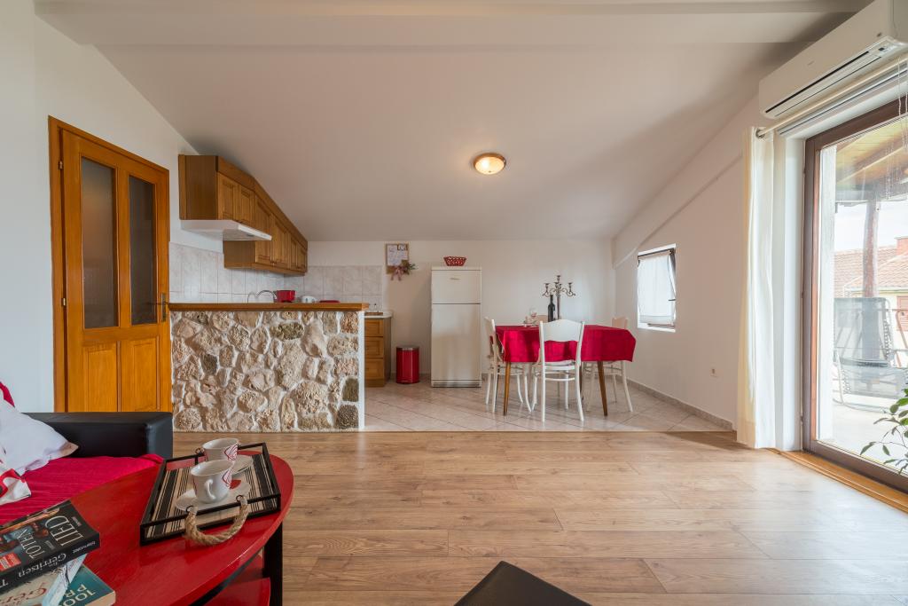 Dejlig indkvartering med en stor terrasse og udsigt over havet med alt udstyr, tilgængeligheden af alle tjenester i nærheden, vejen til stranden gennem en privat have, stranden er ren, ejerne er behagelige og venlige. Vi var yderst tilfredse. Jeg anbefaler det til alle!!!