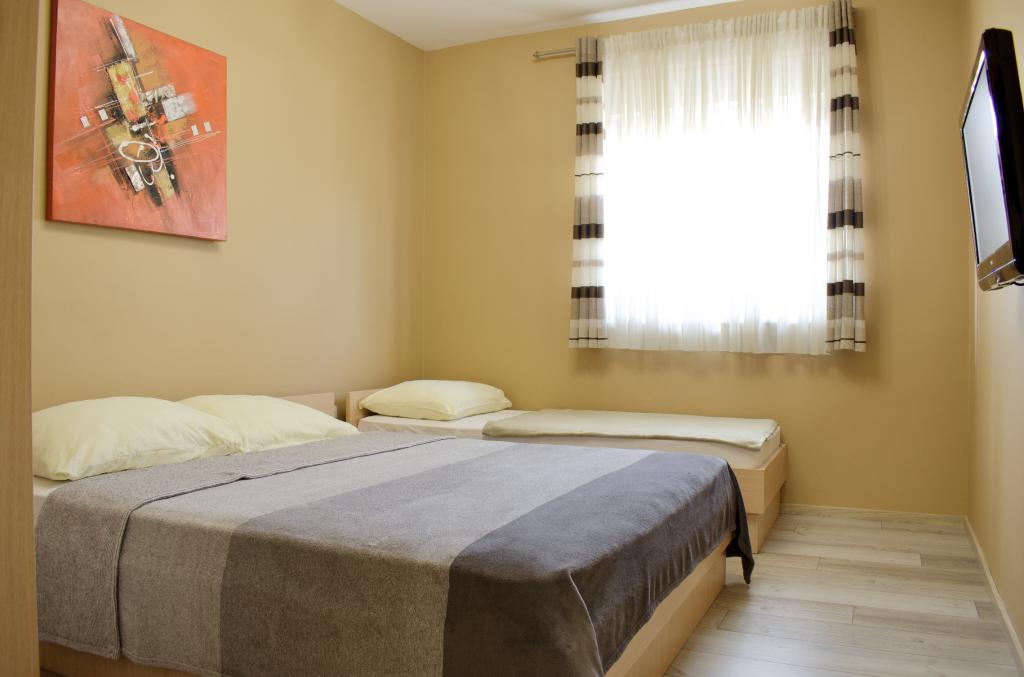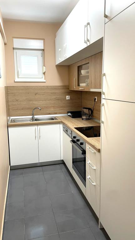 Vores lejligheder er beliggende i Biograd ved havet kun 7 minutter til fods over den største bystrand Dražica. Den nærmeste butik ligger på den anden side af gaden fra huset, og byens centrum ligger 600 meter væk. Der er også adskillige caféer og restauranter i nærheden, og en sommerbiograf under stjernerne ligger kun 3 minutters gang fra overnatningsstedet. Alle lejligheder er udstyret med aircondition, tv, gratis Wi-Fi, alt uden ekstra gebyr, og indeholder et fuldt udstyret køkken med opvaskemaskine, elkedel og kaffemaskine. I lejlighederne finder du gratis toiletartikler og køkkenudstyr samt rene klude og håndklæder. I husets gård er der en udendørs pejs med grilludstyr, og der er gratis parkering.