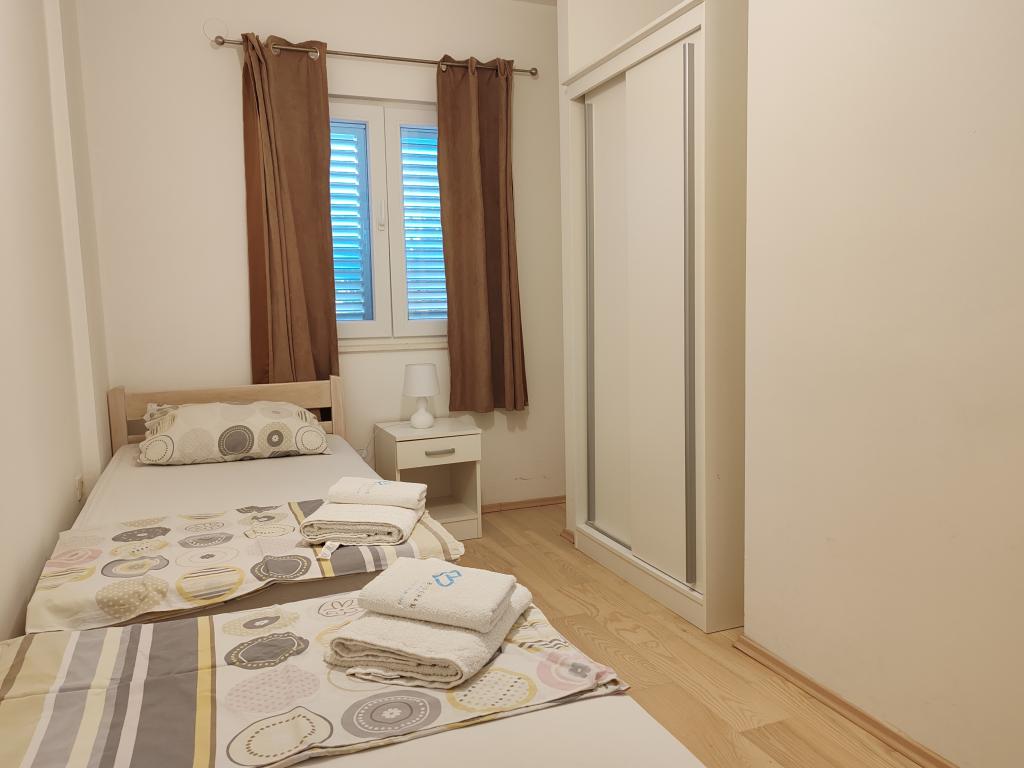 Lejlighederne er beliggende i et hus beliggende i den rolige bygd Kumenat. Det er omgivet af grønne områder og natur, kun 250 meter fra havet. Anlægget består af 5 lejligheder med en kapacitet på 4-6 personer. Alle lejligheder har aircondition, tv og terrasse med udsigt over havet. Hver lejlighed har en vaskemaskine. Omkring bygningen er der parkering for alle gæster, og brugen af en udendørs grill er tilgængelig efter anmodning.