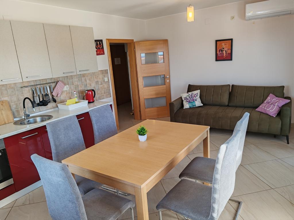 Jeg anbefaler alle ti. Smuk lejlighed, rummelig, fuldt udstyret, med alt hvad du behøver. Vi var seks, to voksne og fire børn. Der var 4 cykler til rådighed, mulighed for at grille, men det brugte vi ikke. Ejeren er sød, imødekommende og hjælpsom. Kommunikation hurtig og uden problemer. Vi betalte et depositum, vi modtog også en bekræftelse på betaling af depositum. Kumenat strand er i nærheden, ret store sten i vandet, vi gik også med børnene til den nærliggende Soline strand, hvor der var restauranter, promenader, attraktioner for børn, vandet var lille i lang tid, ideelt for børn. Rigtig god ferie, tak Robert Kovačiček.