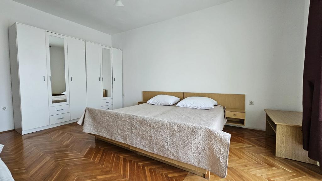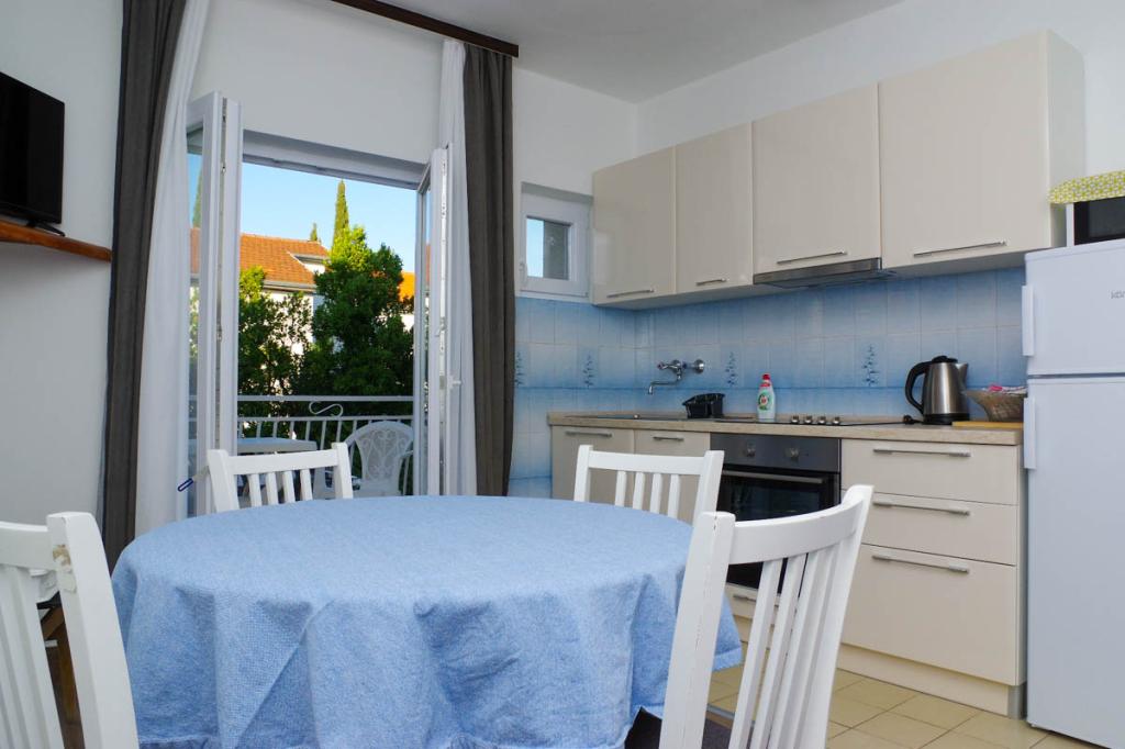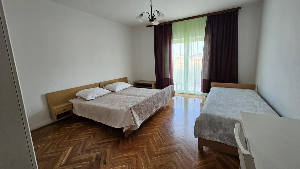Lejlighederne ligger på første sal i familiehuset. Parkering er i gården og er inkluderet i lejlighedens pris. Lejlighed 1 har et køkken med en sovesofa, der kan laves om til en dobbeltseng (kun for børn op til 12 år), badeværelse og soveværelse til to personer. Lejlighed 2 har to separate soveværelser. Det ene har en ekstra seng (kun for et barn op til 12 år), køkken og badeværelse. Hvert værelse har sin egen balkon.