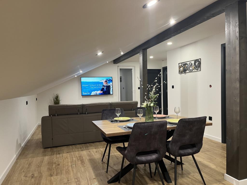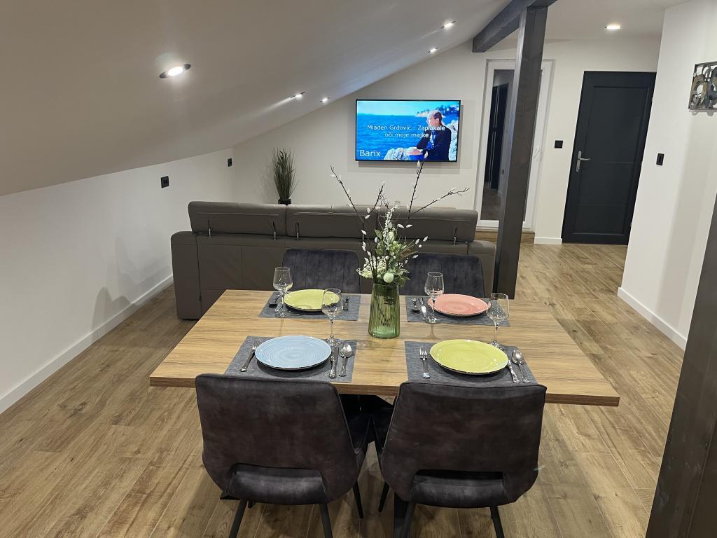 Fuldt moderne udstyrede lejligheder i et roligt område af byen, kun 10 minutter fra havet og 15 minutter fra byens centrum, 10 minutter fra forlystelsesparken Dalmaland. Hvert værelse har aircondition. Prisen inkluderer gratis parkering til stranden og byen på Tina Ujevića 37 fra 0-24