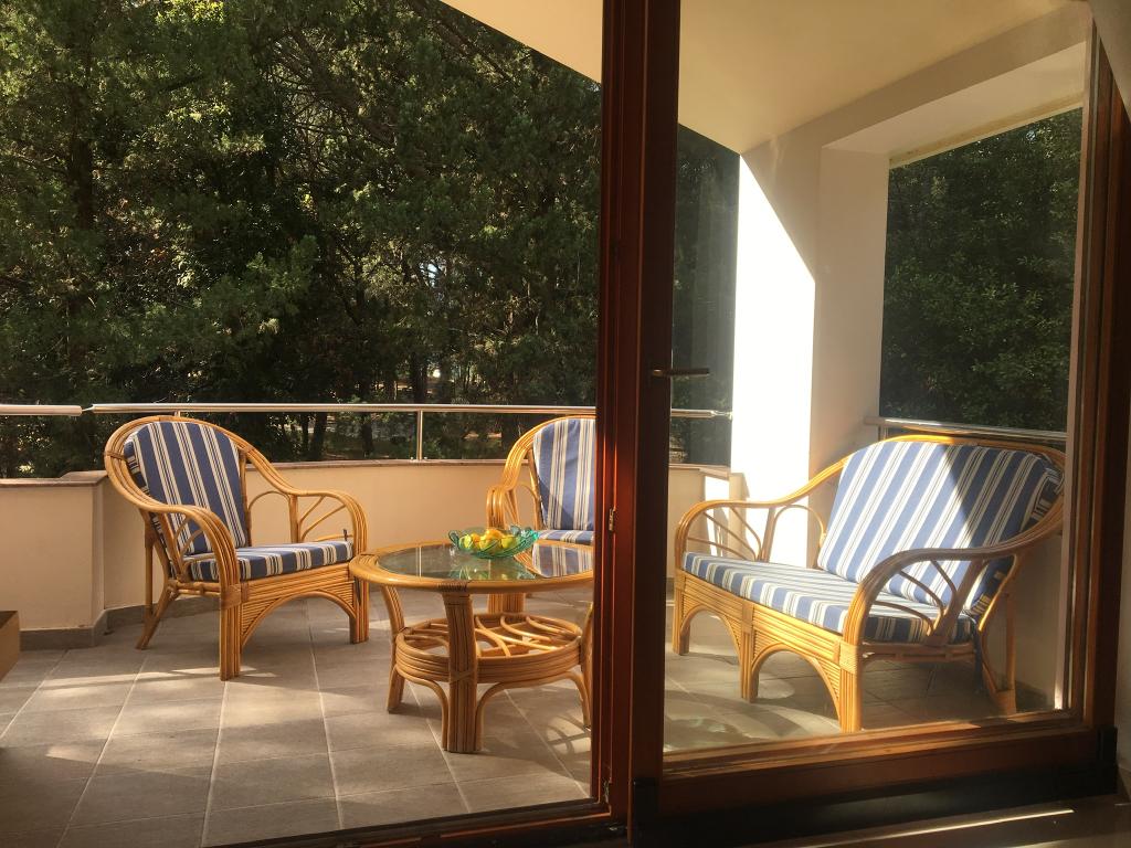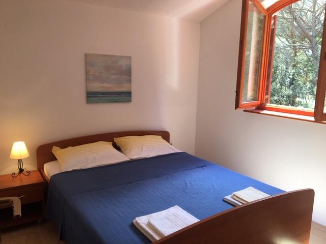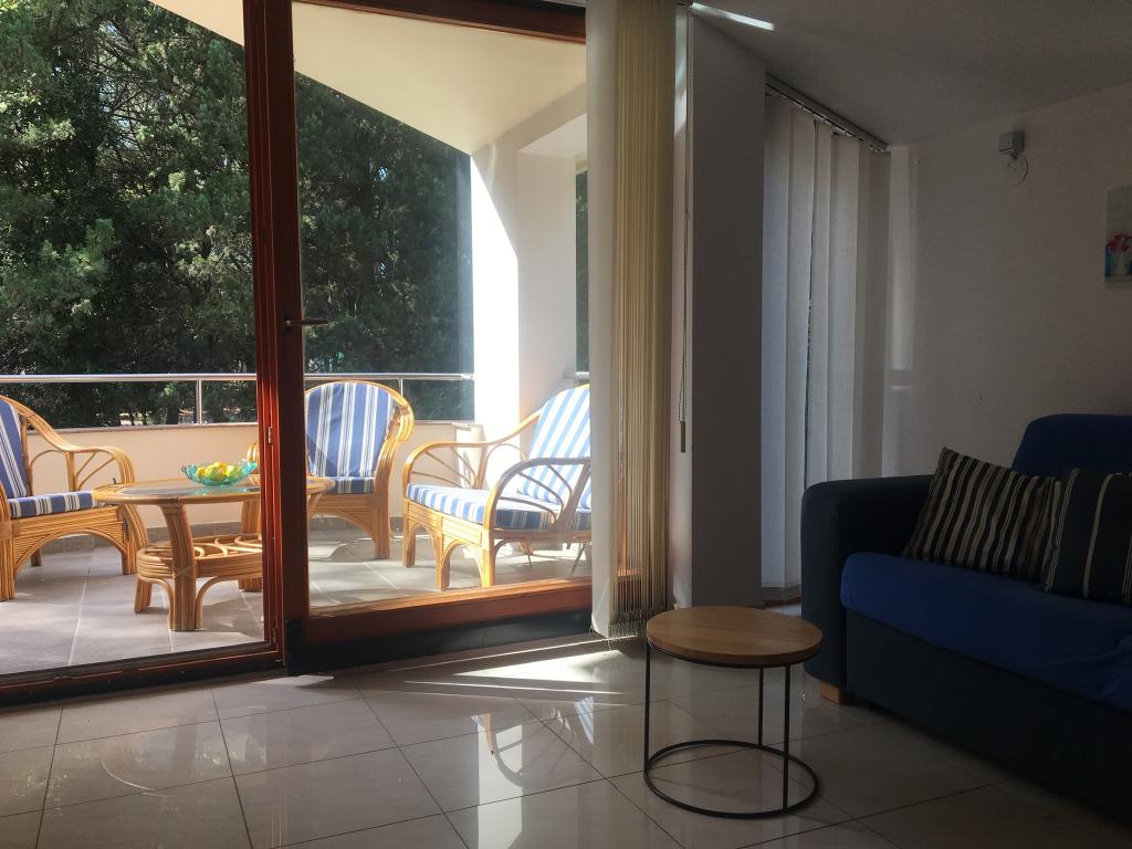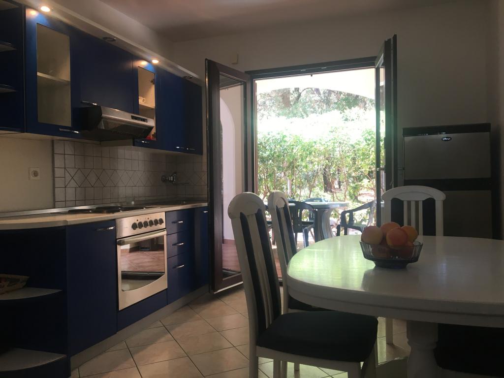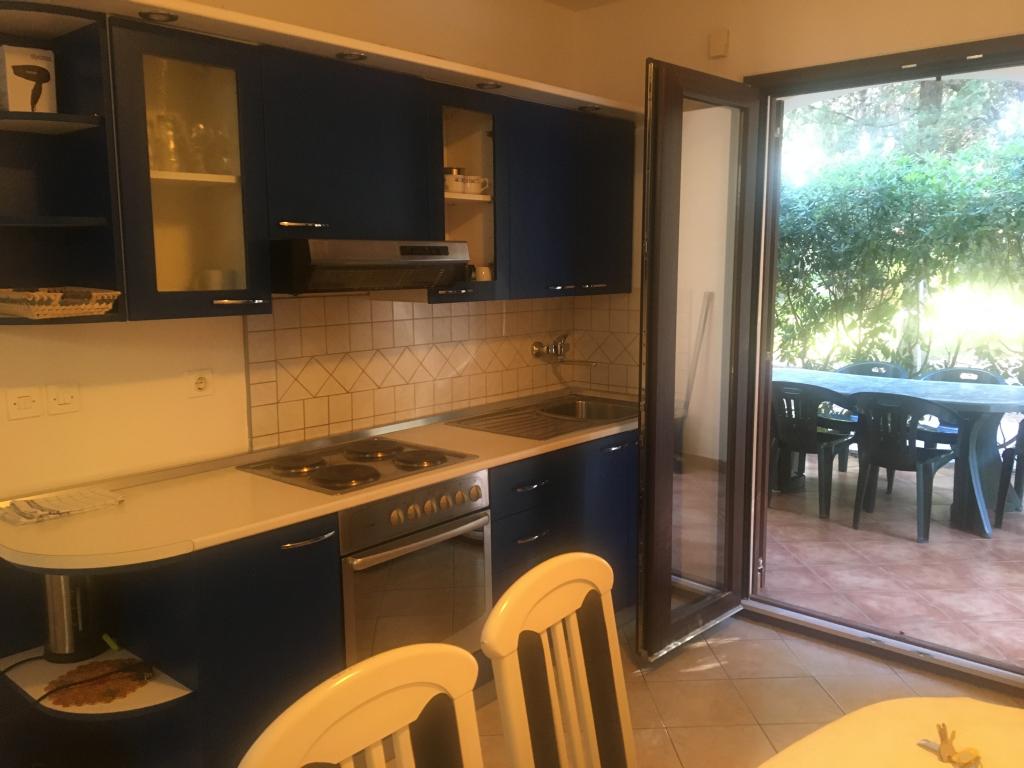lejligheden har to soveværelser, stue, køkken med spisestue, badeværelse med bruser og toilet. Det har sin egen parkeringsplads, Wi-Fi, har aircondition og er udstyret med blandt andet en vaskemaskine, og har også en stor terrasse og grill. Fra køkkenet er der udgang til den overdækkede del af terrassen, som giver mulighed for spisning udenfor. Terrassen er skjult af et grønt hegn og giver mulighed for solbadning. Lejligheden ligger i en fyrreskov ca 250 m fra hovedstranden (Soline strand) i Biograd, og samtidig er den ikke langt fra centrum af Biograd (havnefronten). I umiddelbar nærhed af lejligheden (ca. 150m fra lejligheden) er der tennisbaner og andre faciliteter.