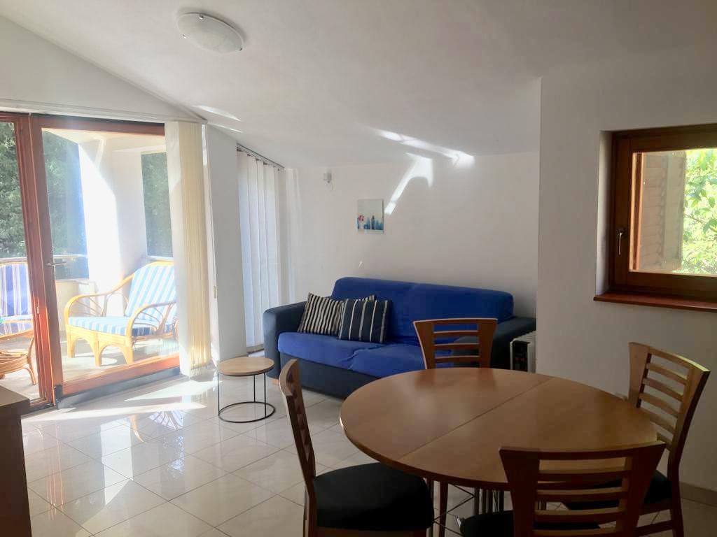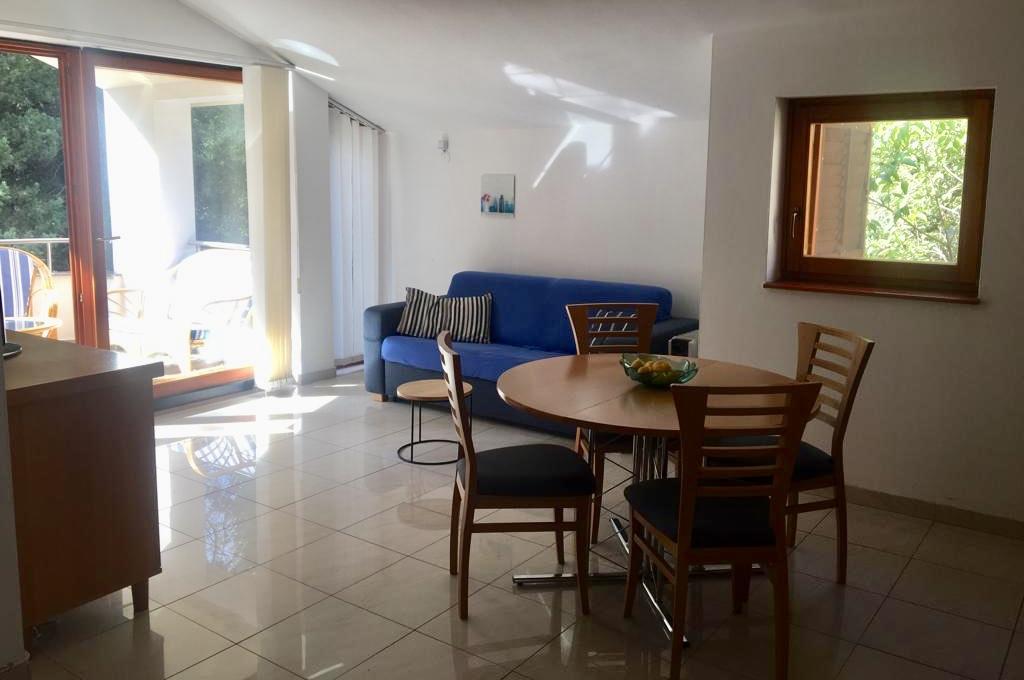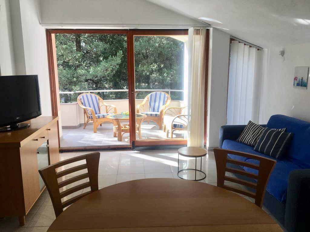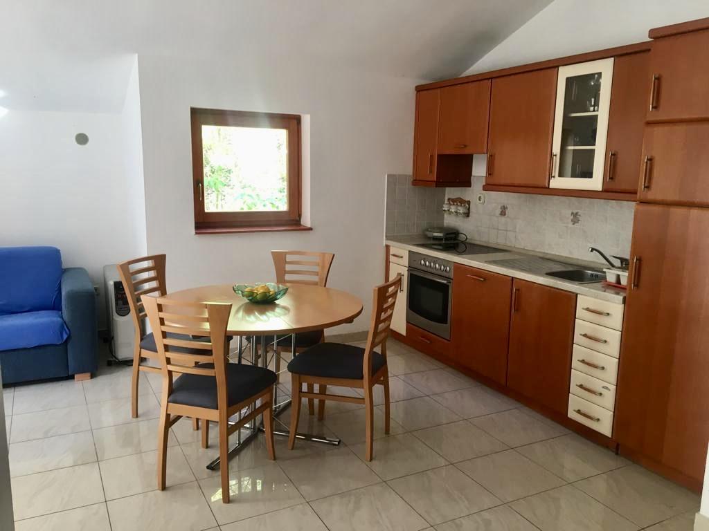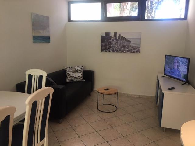lejligheden har to soveværelser, stue, køkken med spisestue, badeværelse med bruser og toilet. Det har sin egen parkeringsplads, Wi-Fi, har aircondition og er udstyret med blandt andet en vaskemaskine, og har også en stor terrasse og grill. Fra køkkenet er der udgang til den overdækkede del af terrassen, som giver mulighed for spisning udenfor. Terrassen er skjult af et grønt hegn og giver mulighed for solbadning. Lejligheden ligger i en fyrreskov ca 250 m fra hovedstranden (Soline strand) i Biograd, og samtidig er den ikke langt fra centrum af Biograd (havnefronten). I umiddelbar nærhed af lejligheden (ca. 150m fra lejligheden) er der tennisbaner og andre faciliteter.