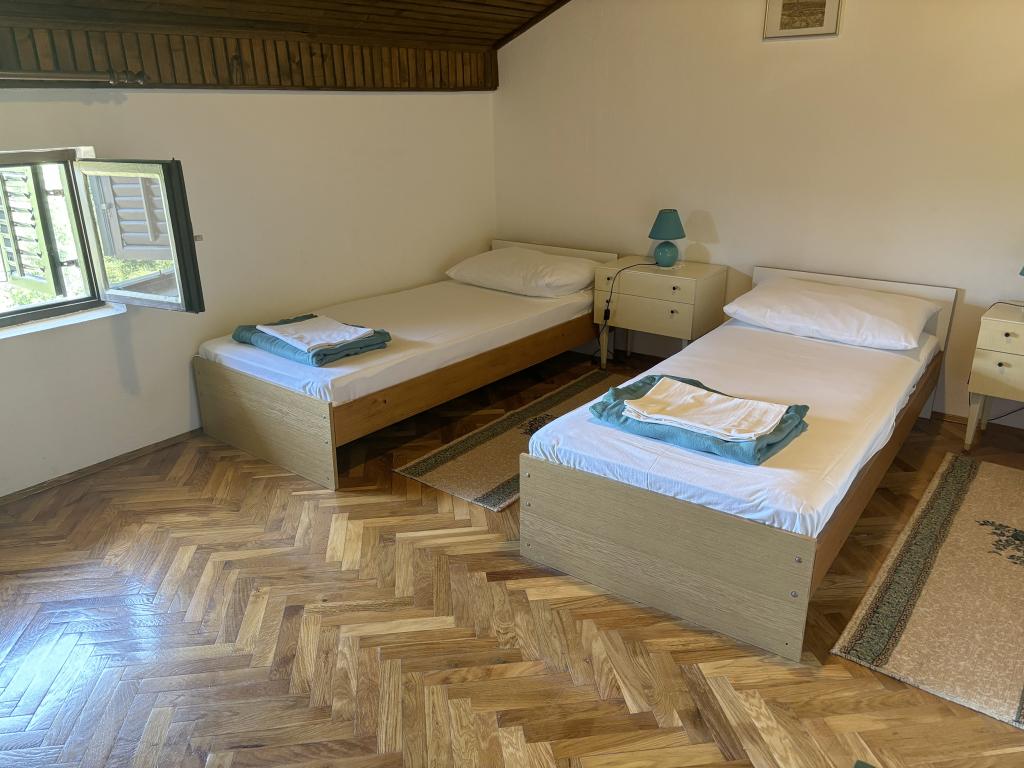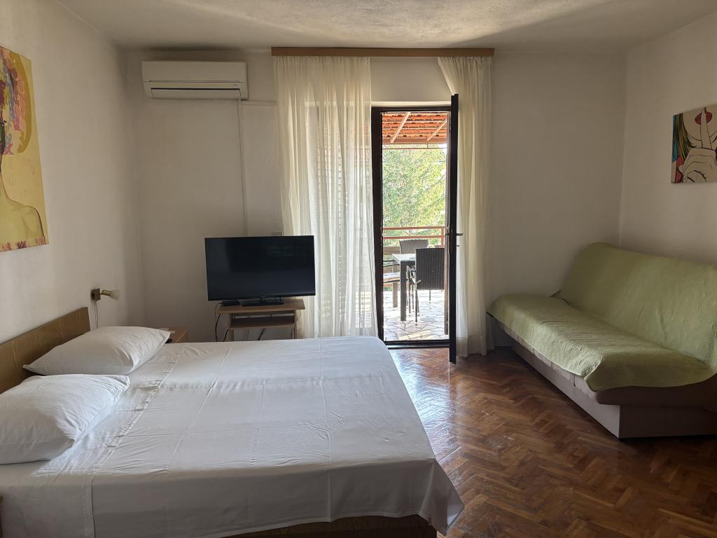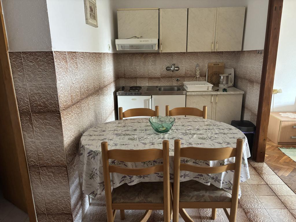 Vi er beliggende i afviklingen af private villaer - turiststed med private villaer, i en skovklædt og roligt område, perfekt til en familie ferie væk fra skarer, støj og skarer. Den udvej har sin egen stenstrand, mens den sandstrand Soline 500 meter. Landsbyen har en almindelig butik. Selvom vi er langt fra byens centrum, kan takket være den dekorerede promenade langs kysten komme til havnefronten i 15 minutter. Vores lejligheder er fuldt udstyret. Huset er omgivet af anlagte haver med grønt og blomster. Gratis wi-fi. Gæsterne kan benytte den udendørs sten grill. I gården er en gratis parkeringsplads. Vi ønsker dig et behageligt ophold!