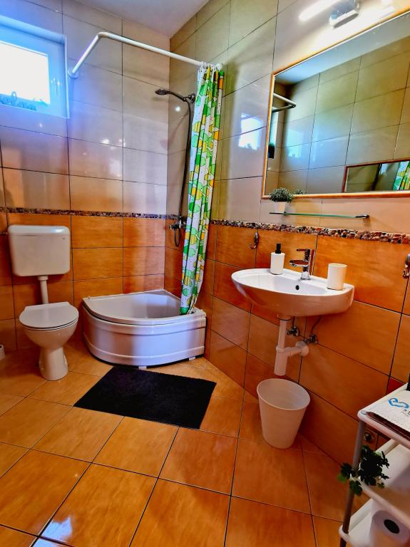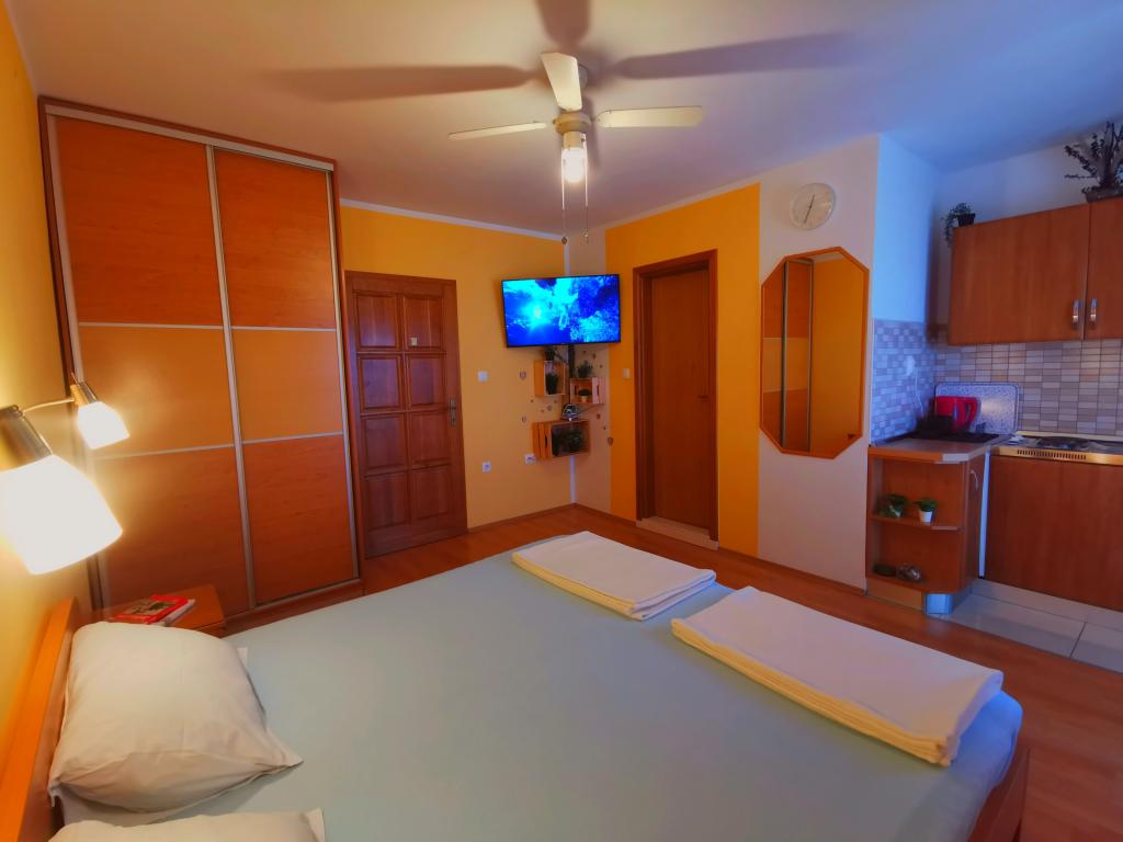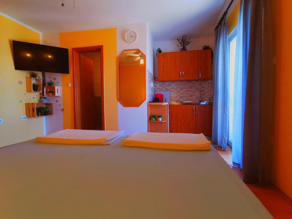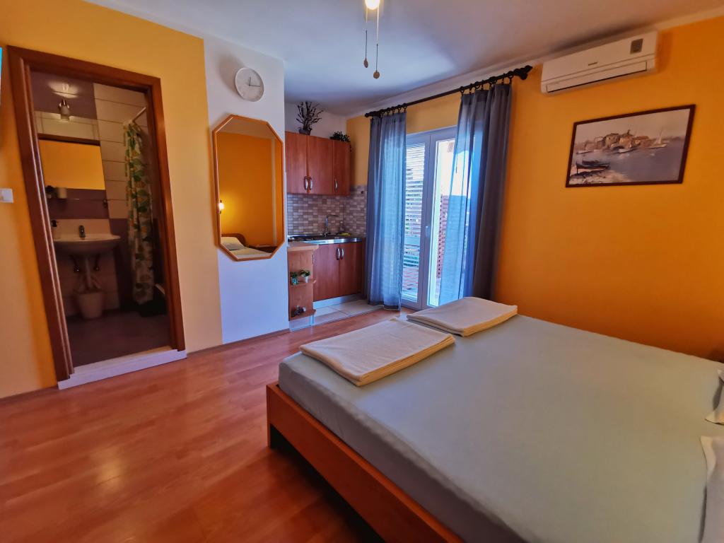 Strandlejligheder Roza beliggende første række til Bošana strand i en gård fuld af grønne områder, tæt på alle faciliteter. Butikker, restauranter og barer ligger i umiddelbar nærhed, og byens centrum er mindre end 10 minutters gang væk. Sikker parkering i gården til standardstørrelse køretøjer.