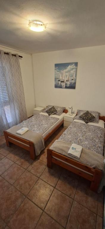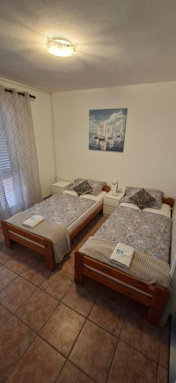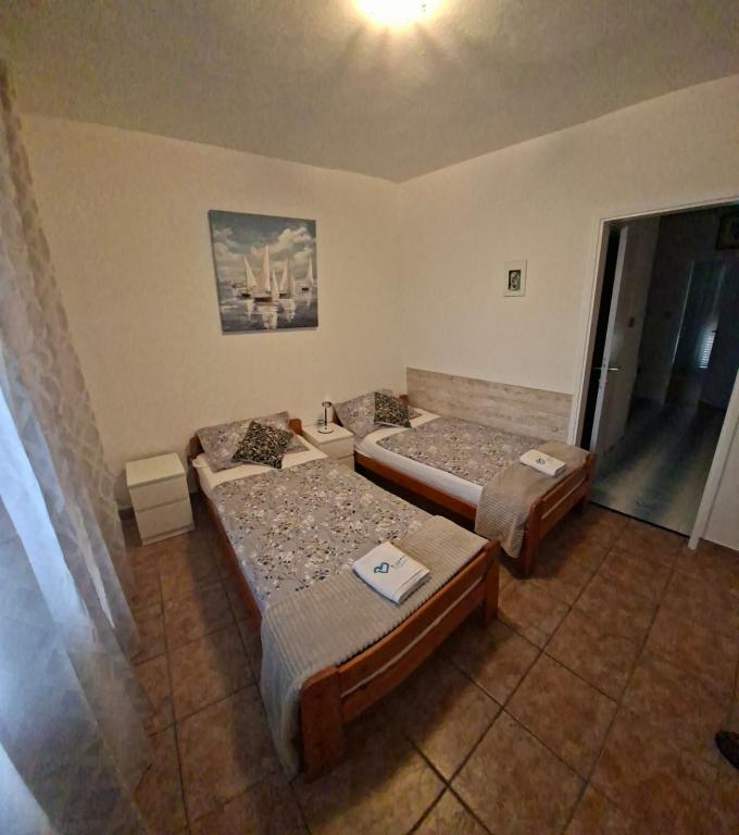 Lejlighederne er beliggende i Biograd na moru i Kumenat-bosættelsen. Ideel til en familieferie. Tæt på stranden. Kysten er indrykket, så alle kan finde deres eget stille hjørne ved havet. Strandene er sandede og småsten. Den nærmeste strand ligger 5 minutters gang derfra, og byens centrum ligger cirka 20 minutters afslappet gåtur langs promenaden ved havet. Byen Biograd byder på adskillige faciliteter for voksne og børn.