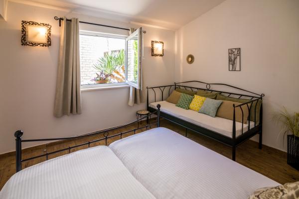 Komfortable, rene og lejligheder med aircondition er beliggende nær centrum og marinaen i Biograd, som ligger ca 150 m fra havet, så tæt på den smukke, rummelige og sandstrand med en legeplads, cafe og restaurant. Lejlighederne har en privat terrasse med en have, hvor der er en grill til brug. Det nærmeste supermarked er placeret i den første nabohuset.