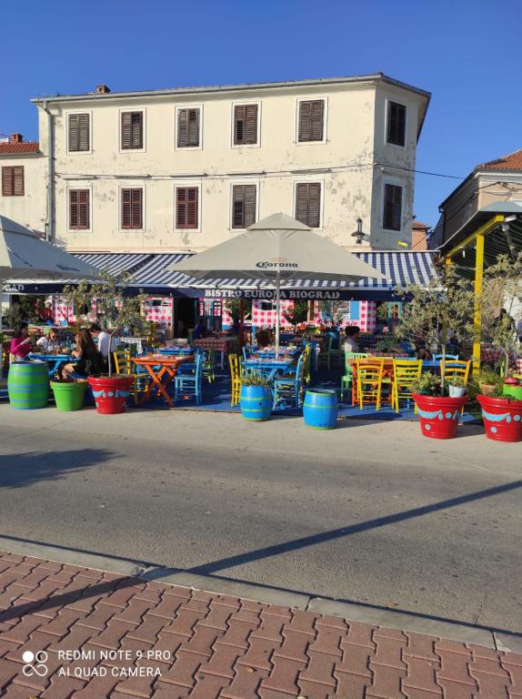 Den smukkeste beliggenhed for en sommerferie i Biograd..150 m til Dražica-stranden ved Biograds hovedstrand, lille sandstrand 150 m, tæt på Soline-stranden. Alle lejligheder har egen terrasse (loggia), aircondition... parkering, turistskat, wi-fi inkluderet i indkvarteringsprisen... indkvarteringskapacitet, to A4-lejligheder plus ekstra seng, to A5-lejligheder plus ekstra seng... Du har en let 3-4 minutters gåtur langs promenaden til indgangen til havet... midten af Dražicas hovedstrand.. Dražica-stranden forbundet med Soline-stranden og centrum... til centrum (riva) 5 minutters let gåtur langs promenaden.. alle faciliteter for børn og voksne, børnepark ved siden af lejligheden... bank, apotek, sundhedscenter, marked, swimmingpool 200 m, tennisbaner, sommerbiograf - alt inden for 300 m... butik 100 m... bymidte - riva 300 m... forbundet af en promenade langs kysten.