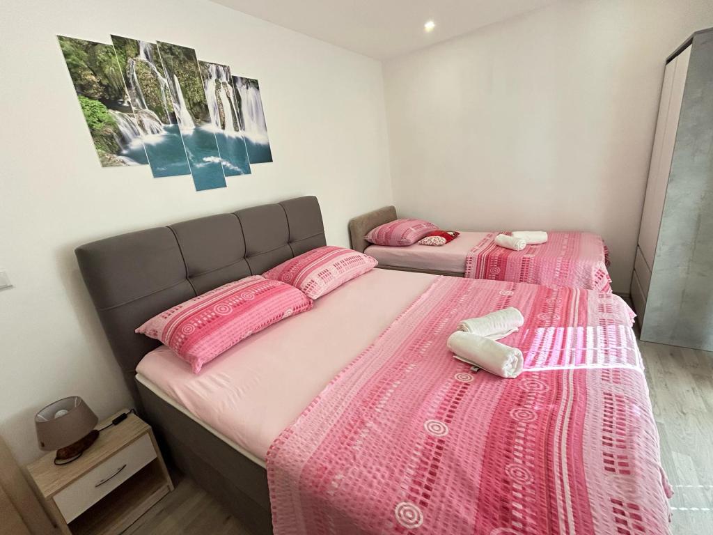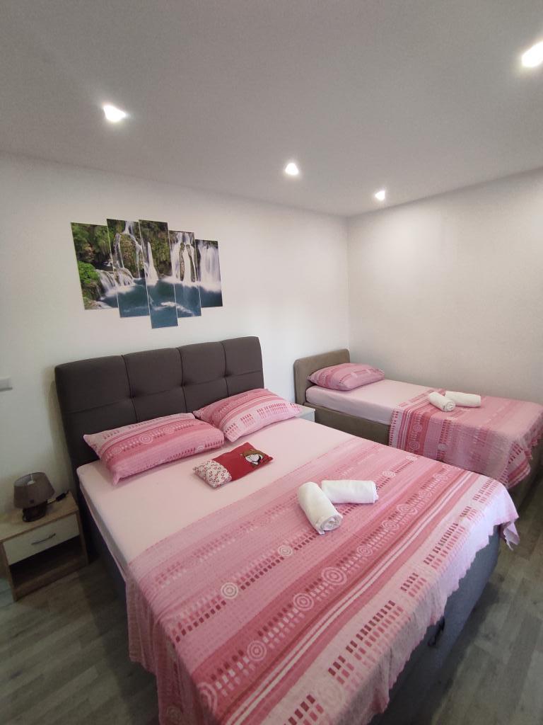VILLA DAJA - Velkommen Drømmeferie i Dalmatien. Book dit ophold i denne luksusvilla! Vi taler alle sprog. Denne luksuriøse nye villa er et ekstremt hyggeligt familiehus, ideelt for alle dem, der nyder en ferie i komfort, sjov og stil. Denne smukke villa er beliggende i en rolig del af byen nær hovedstranden og Mirnovec forlystelsesparken i Biograd na moru. Der er mange attraktive funktioner i huset, herunder en yacuzzi, to badeværelser i deluxe-suiten, walk-in brusere på de andre badeværelser...denne villa er lys og rummelig og tilbyder et overkommeligt hjem væk fra hjemmet for familier. Komfortabel soveplads for op til 10 personer i deluxe-lejligheden og 5 personer i de øvrige lejligheder. Discoklubber, kasino, hospital, store butikker og mange flere ting, der er lige ved hånden. Kontakt os for flere detaljer.