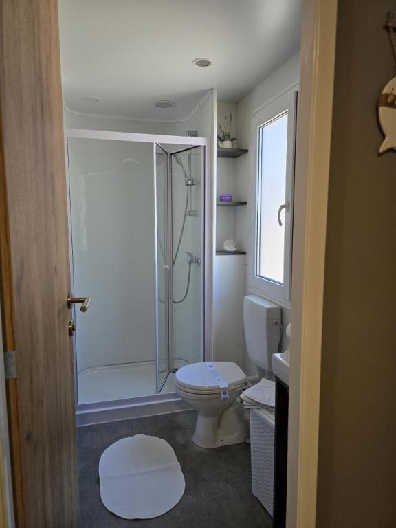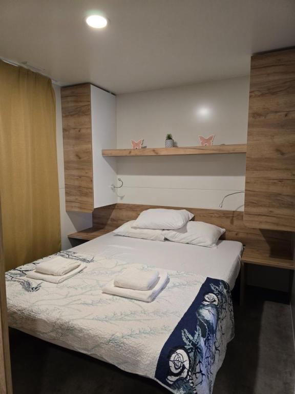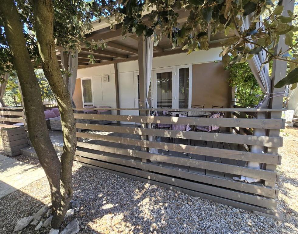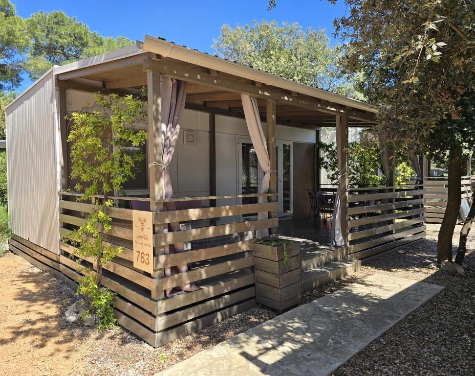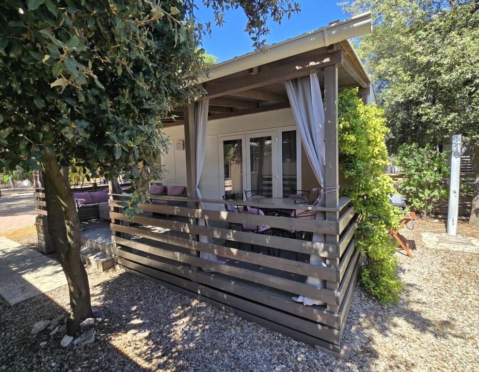 Fuldt udstyret mobilhome på 30m2 med stor terrasse og parkeringsplads. Beliggende i en roligere del af Soline-lejren, ikke langt fra støjen fra restauranter, caféer og stranden, men alligevel tæt nok på.