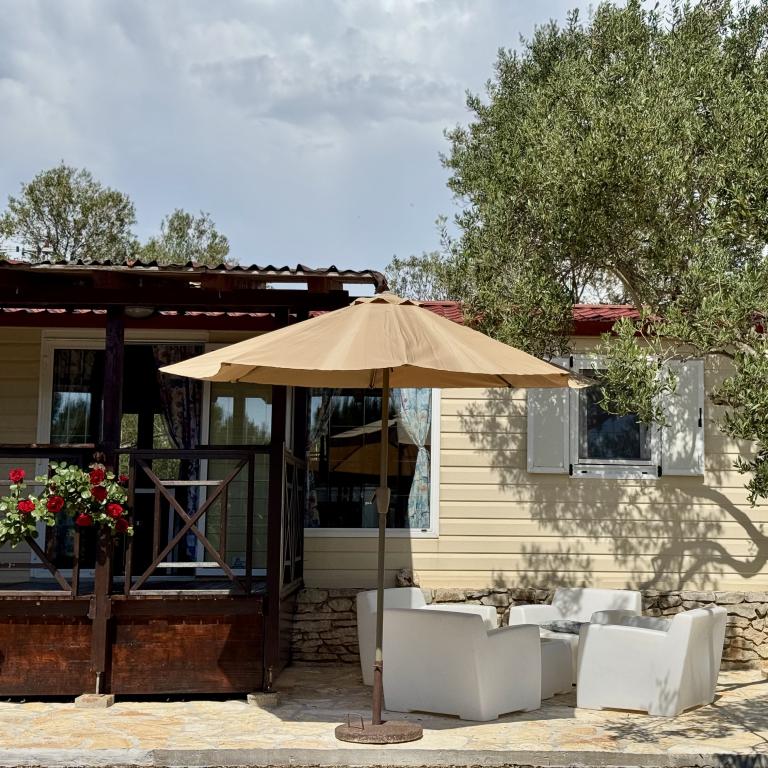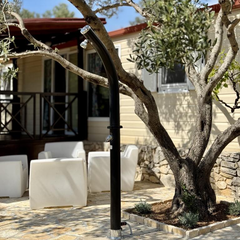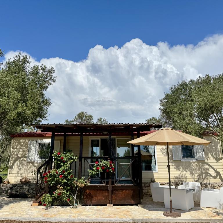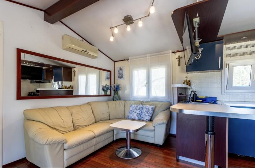 Mobilhomet er placeret i Bakija-lejren, 40 m fra havet, med nem adgang til stranden Ikke langt fra Soline-stranden, 2-3 minutter til fods, 1 minuts gang til Studenac-markedet og 7-8 minutter på. fod til centrum Fuldt udstyret med have, køkken, komfortabel stue. Din egen udendørs grill i hytten og din egen udendørs bruser. Anlægget er til 4 personer, 2 værelser, 2 badeværelser, hvoraf det ene er badeværelse med massagekar. En rummelig terrasse, perfekt til et behageligt ophold med udsigt over havet og smukke solnedgange.