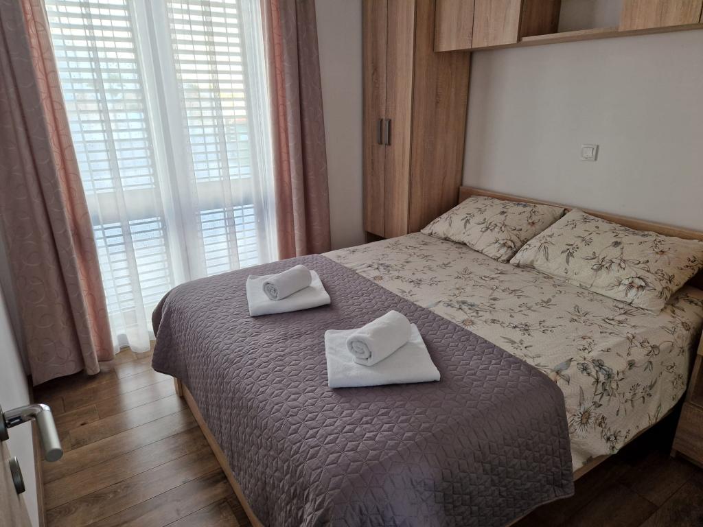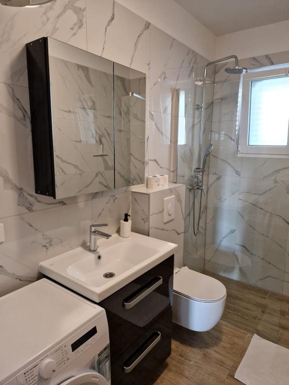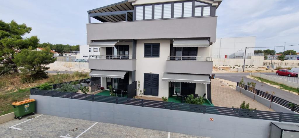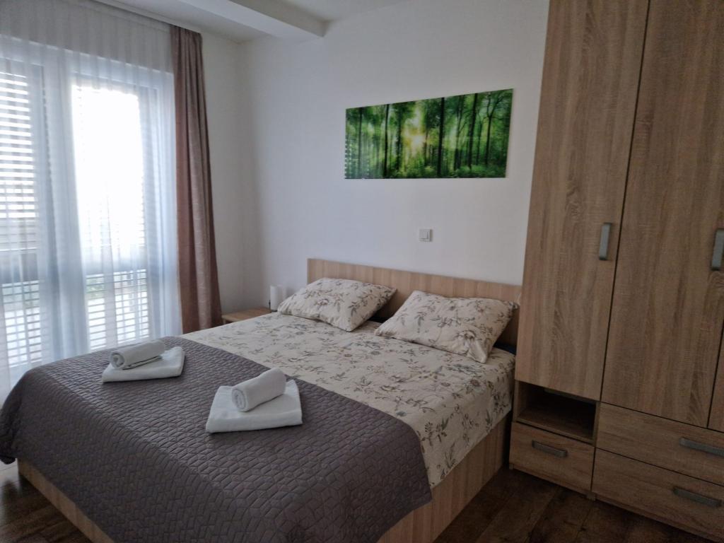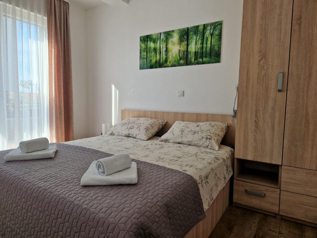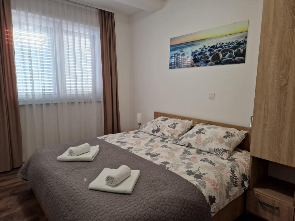 Villa Toni er en nybygget bygning. Lejlighederne er meget pænt indrettede, moderne og luftige. Hver lejlighed har et fuldt udstyret køkken. I hver stue er der en sovesofa. Værelserne er udstyret med store dobbeltsenge og kvalitets- og komfortable madrasser. Alle lejligheder har aircondition og vaskemaskiner. Der er markiser (front og side) på terrasser og altaner. Villaen er beliggende i en rolig del af byen. Der er parkeringsplads i gården. Der er flere supermarkeder, strande, restauranter og caféer i nærheden. Det er 10 minutters gang til centrum og 5 minutter til stranden.