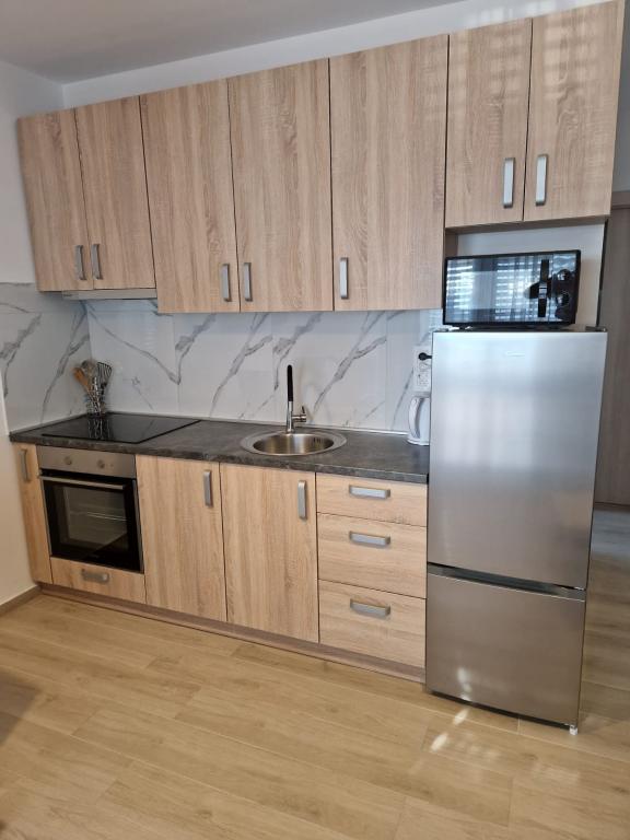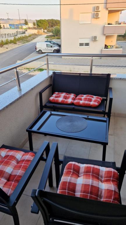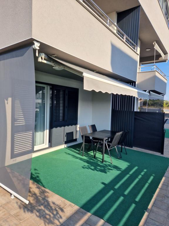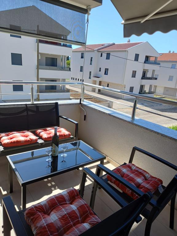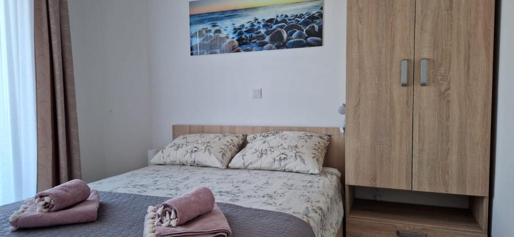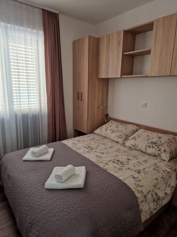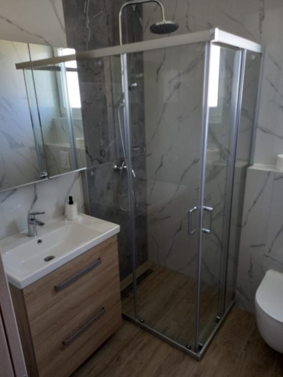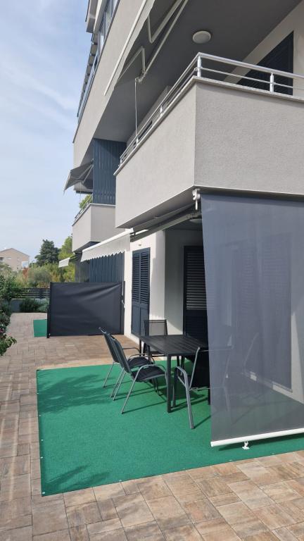 Villa Toni er en nybygget bygning. Lejlighederne er meget pænt indrettede, moderne og luftige. Hver lejlighed har et fuldt udstyret køkken. I hver stue er der en sovesofa. Værelserne er udstyret med store dobbeltsenge og kvalitets- og komfortable madrasser. Alle lejligheder har aircondition og vaskemaskiner. Der er markiser (front og side) på terrasser og altaner. Villaen er beliggende i en rolig del af byen. Der er parkeringsplads i gården. Der er flere supermarkeder, strande, restauranter og caféer i nærheden. Det er 10 minutters gang til centrum og 5 minutter til stranden.