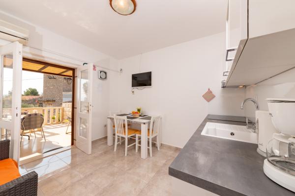 Stenhus med en stor terrasse, grill og liggestole placeret sekunder til havet i et fredeligt og roligt miljø. Anlægget er beliggende 5 minutters gang til centrum og 10 minutters gang til stranden !!!