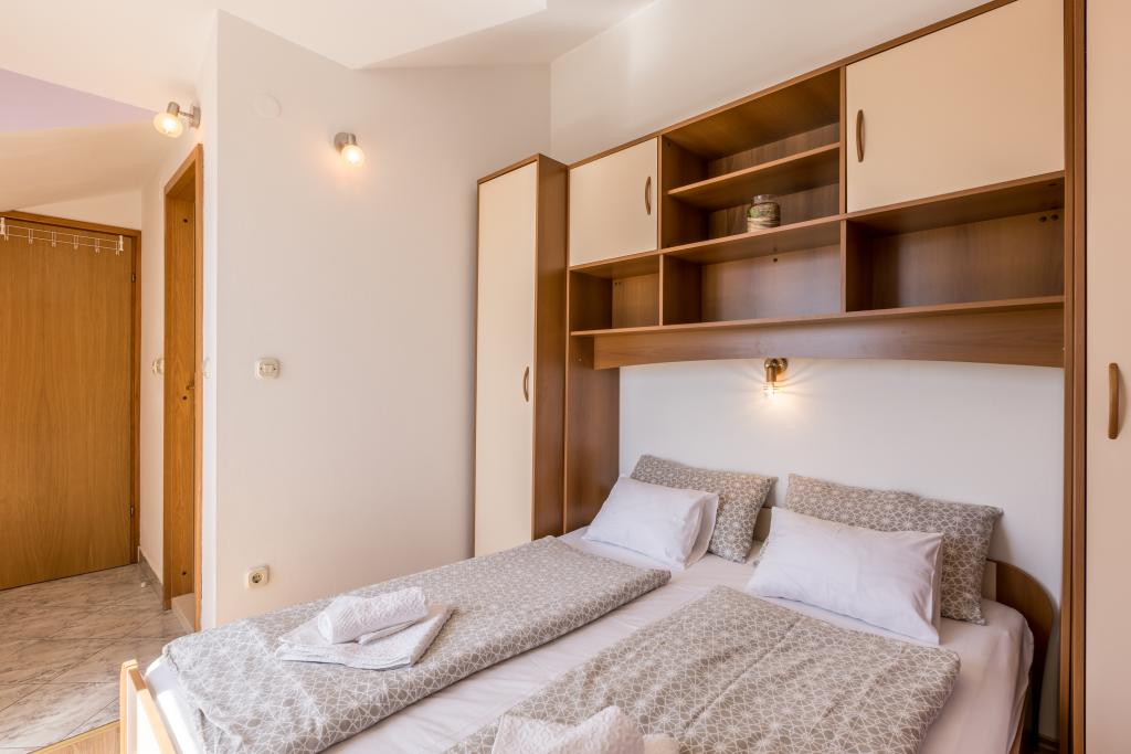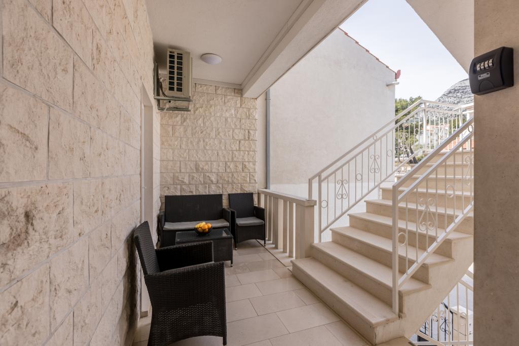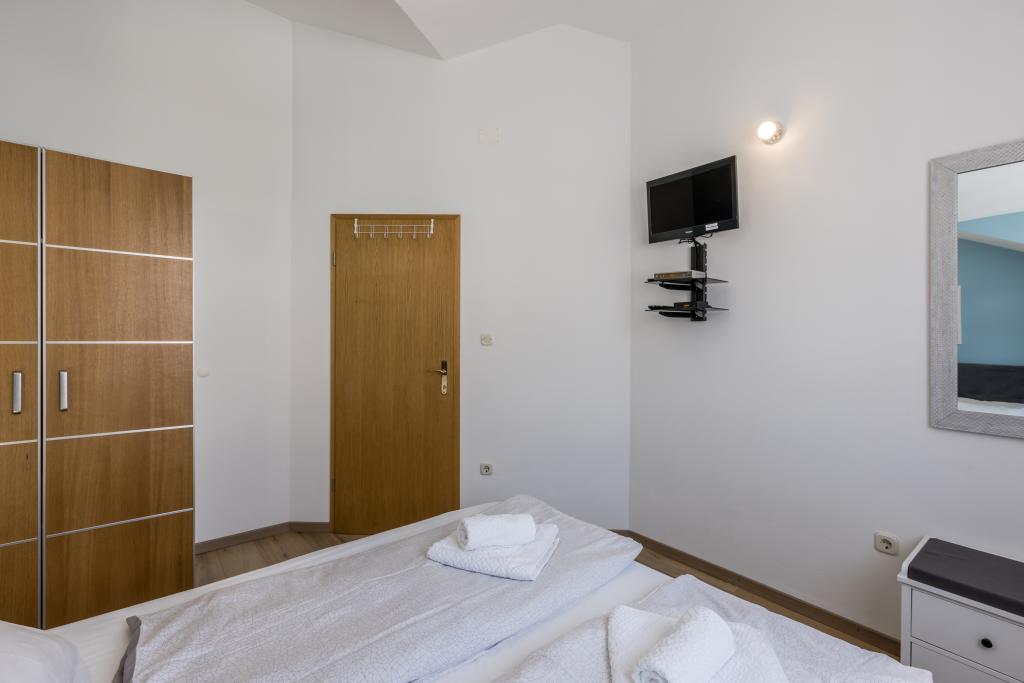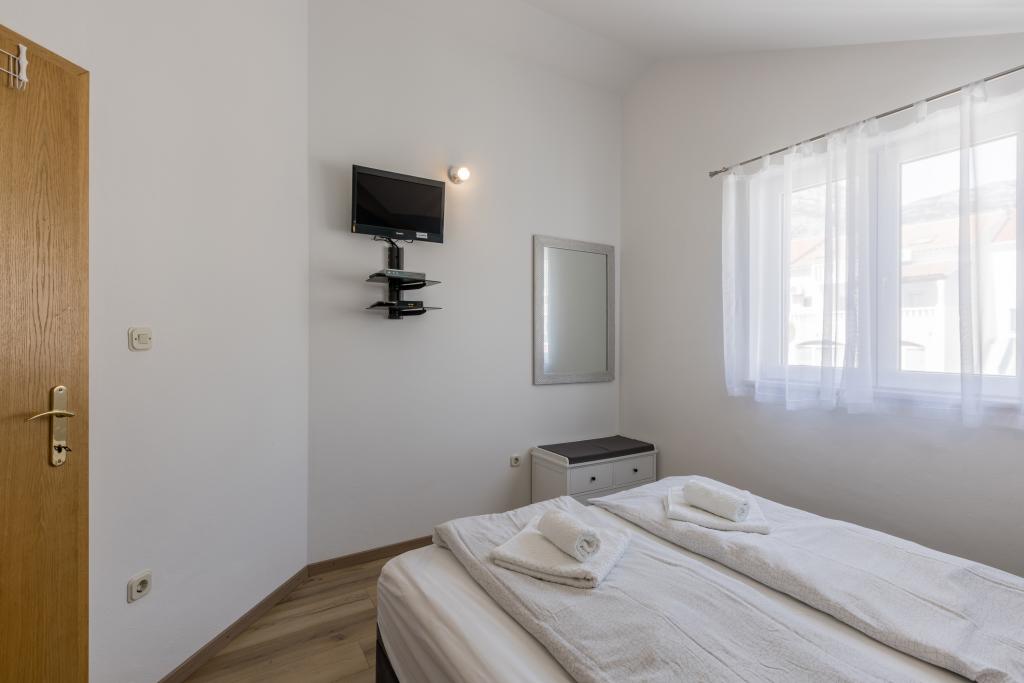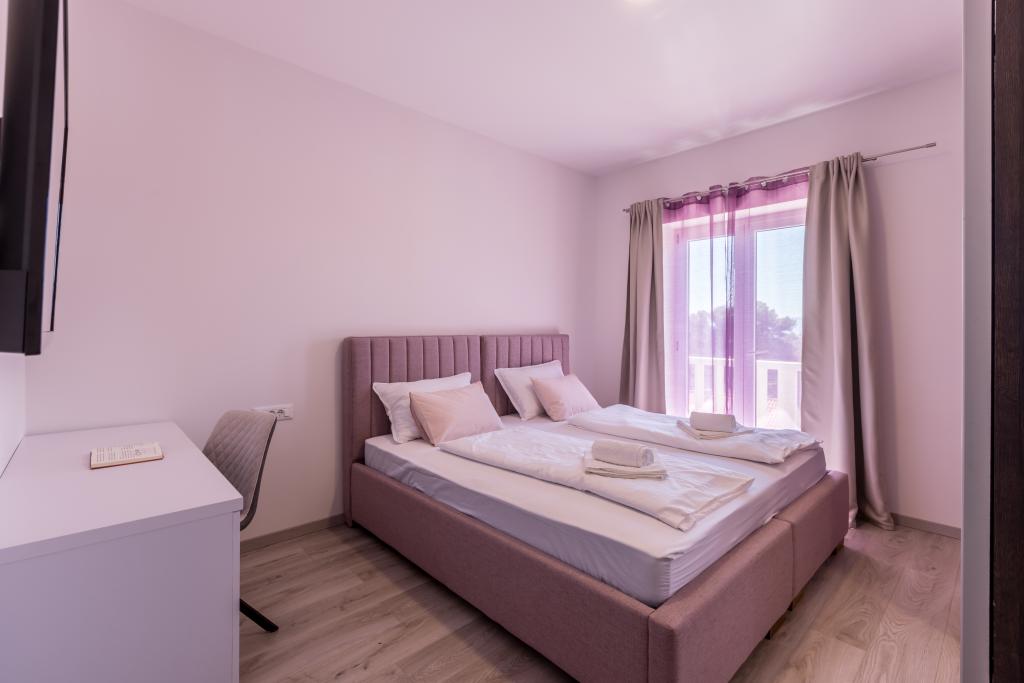 Lejligheder Jelavic ligger i den vestlige del af Bol, lige over promenaden til stranden "Zlatni rat" (Promenade). Huset ligger ca. 150 m fra havet og de første strande. Det er et par minutters gang fra centrum af Bol, så vores gæster let og hurtigt kan få dagligvarer og tjenester fra postkontor, bank, rejsebureauer, politi, ambulance osv. Ikke langt fra huset er der de fleste restauranter, boliger og caféer og natklubber. Selvom "Zlatni rotte" (ca. 2000 m) fra vores hus til stranden fører en smuk promenade ved havet, fra centrum, til denne enestående smukke og verdensberømte strand, er der en regelmæssig bådlinje. Vores hus er bygget i en klassisk dalmatisk stil med facader i hvid Brac-sten, asfalterede terrasser til at bo uden for lejligheden med metalhegn og stensøjler. 20 års erfaring inden for turisme og konstant forbedring af servicen sætter vores lejligheder øverst i udbuddet af privat indkvartering i Bol på øen Brac.