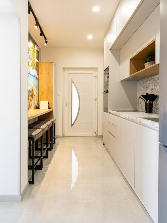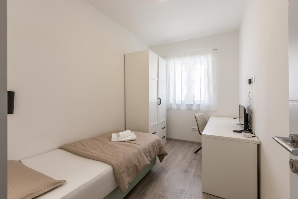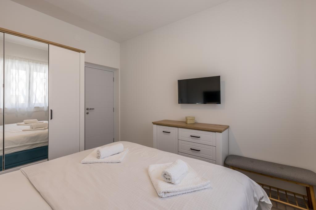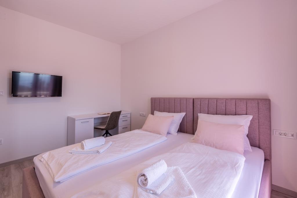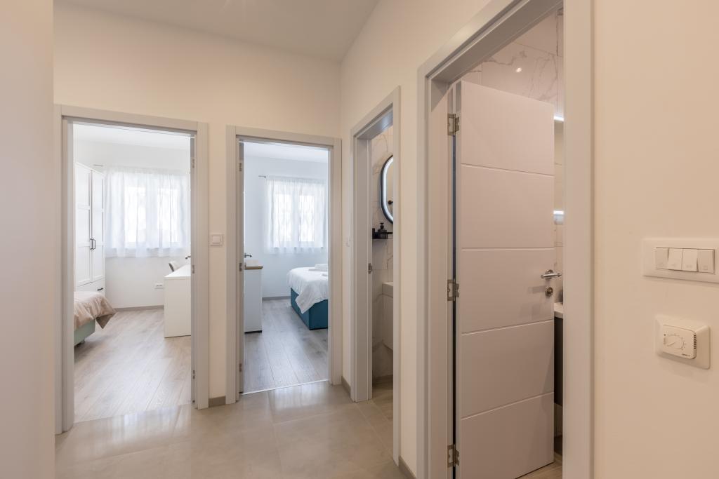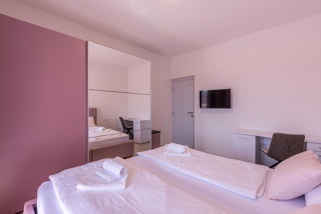 Lejligheder Jelavic ligger i den vestlige del af Bol, lige over promenaden til stranden "Zlatni rat" (Promenade). Huset ligger ca. 150 m fra havet og de første strande. Det er et par minutters gang fra centrum af Bol, så vores gæster let og hurtigt kan få dagligvarer og tjenester fra postkontor, bank, rejsebureauer, politi, ambulance osv. Ikke langt fra huset er der de fleste restauranter, boliger og caféer og natklubber. Selvom "Zlatni rotte" (ca. 2000 m) fra vores hus til stranden fører en smuk promenade ved havet, fra centrum, til denne enestående smukke og verdensberømte strand, er der en regelmæssig bådlinje. Vores hus er bygget i en klassisk dalmatisk stil med facader i hvid Brac-sten, asfalterede terrasser til at bo uden for lejligheden med metalhegn og stensøjler. 20 års erfaring inden for turisme og konstant forbedring af servicen sætter vores lejligheder øverst i udbuddet af privat indkvartering i Bol på øen Brac.