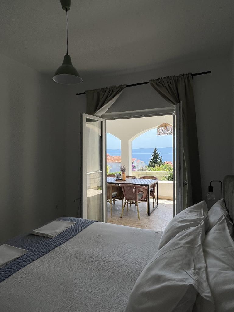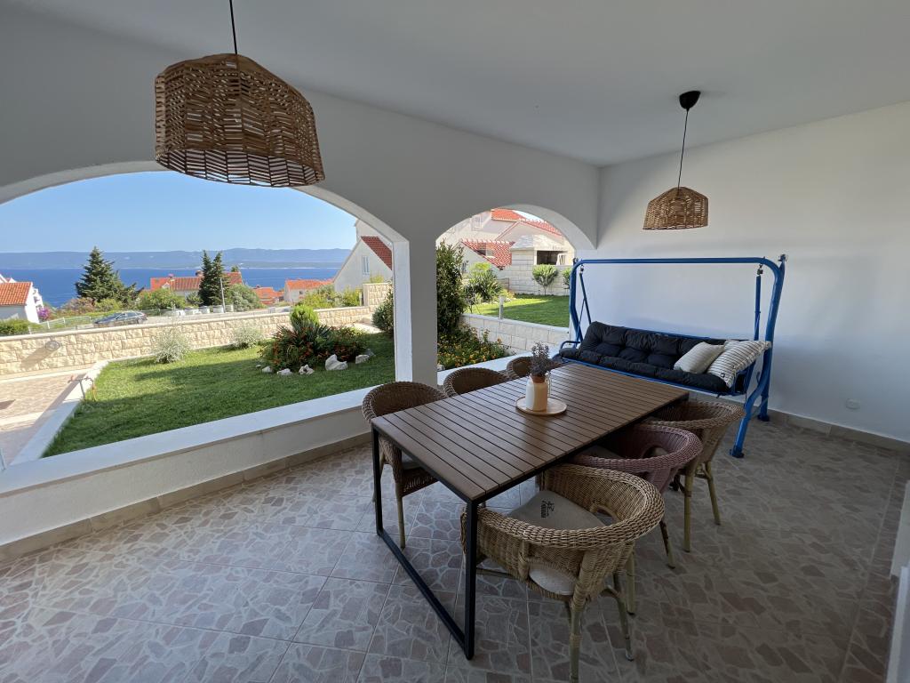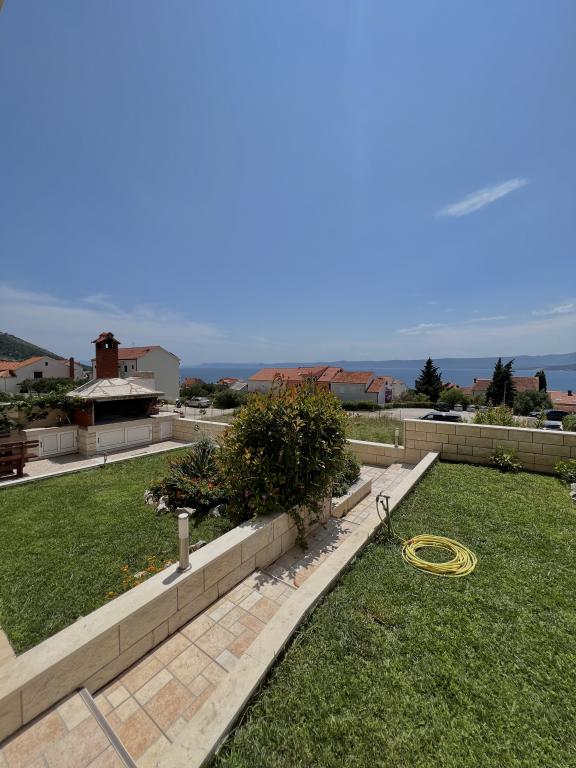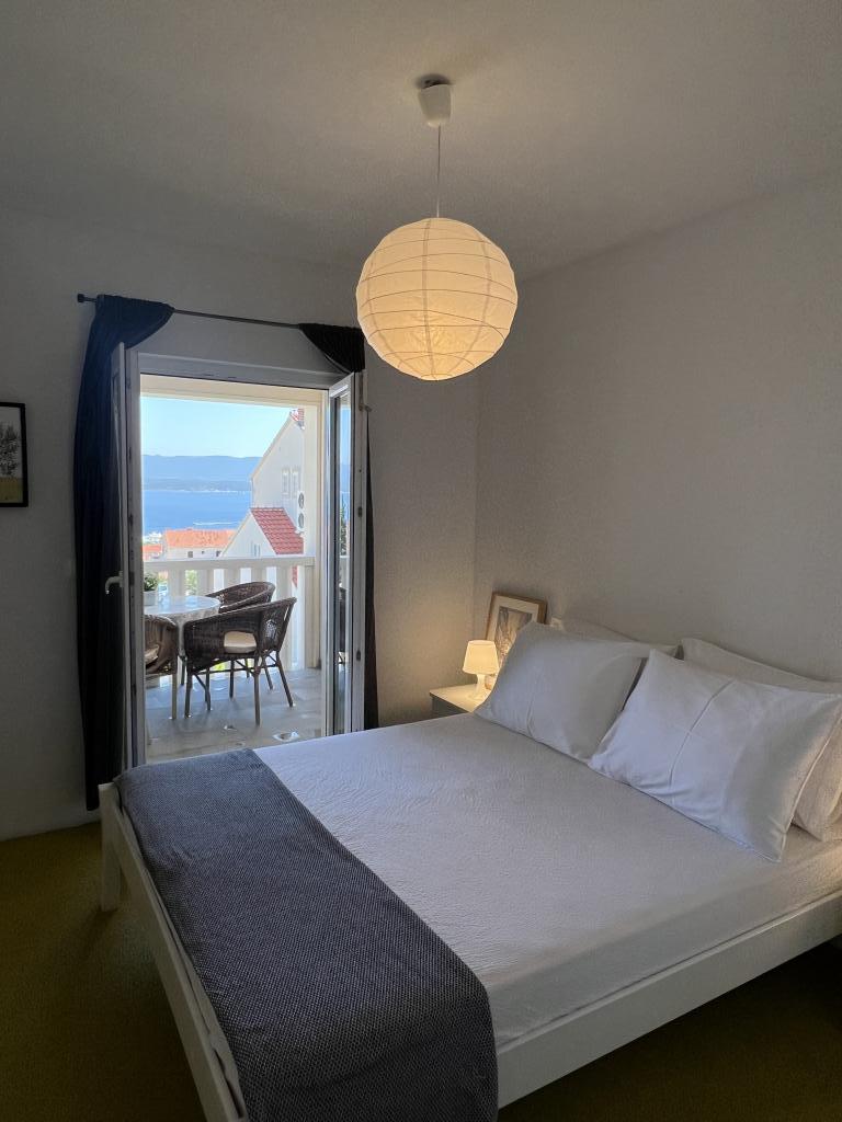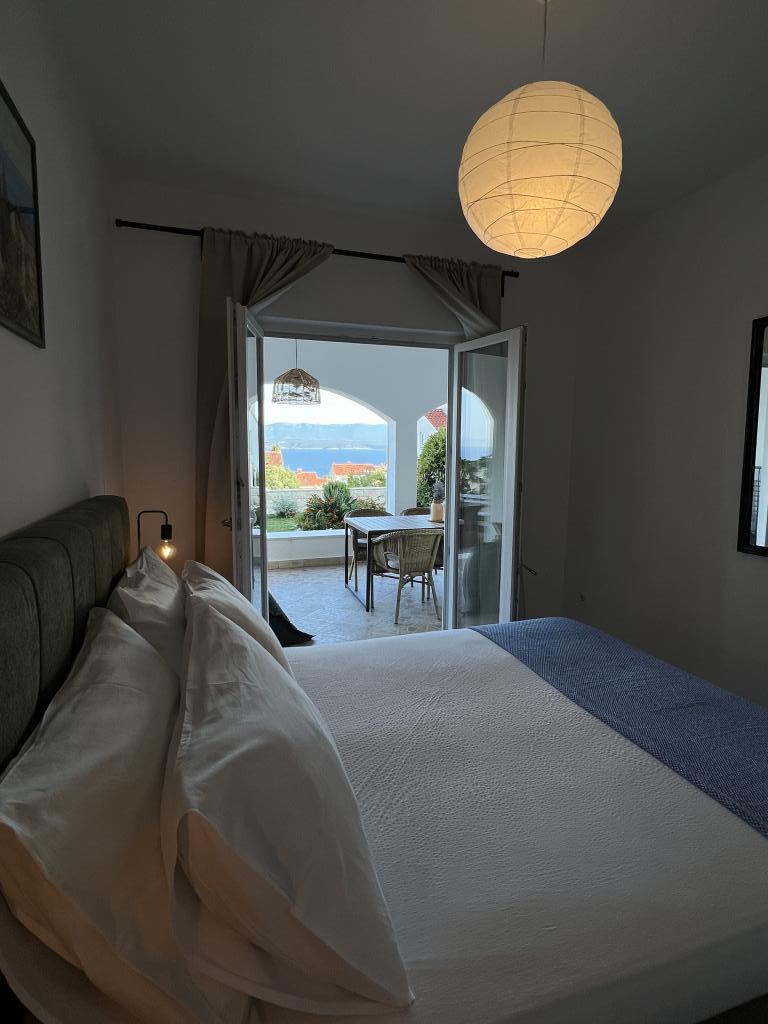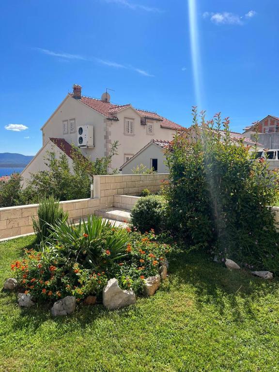 Huset er beliggende midt i Bol, men på en let forhøjet position, så det er ude af byernes menneskemængde og uundgåelige parkeringskaos, men stadig kun 6 minutters let gåtur til Bols gamle centrum, 15 min. gåtur til den vidunderlige "Gyldne Krig". Huset har en stor gårdhave med udsigt over havet. I gården er der en pejs til grillning, som kan nydes af alle husets gæster.