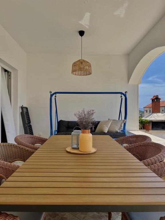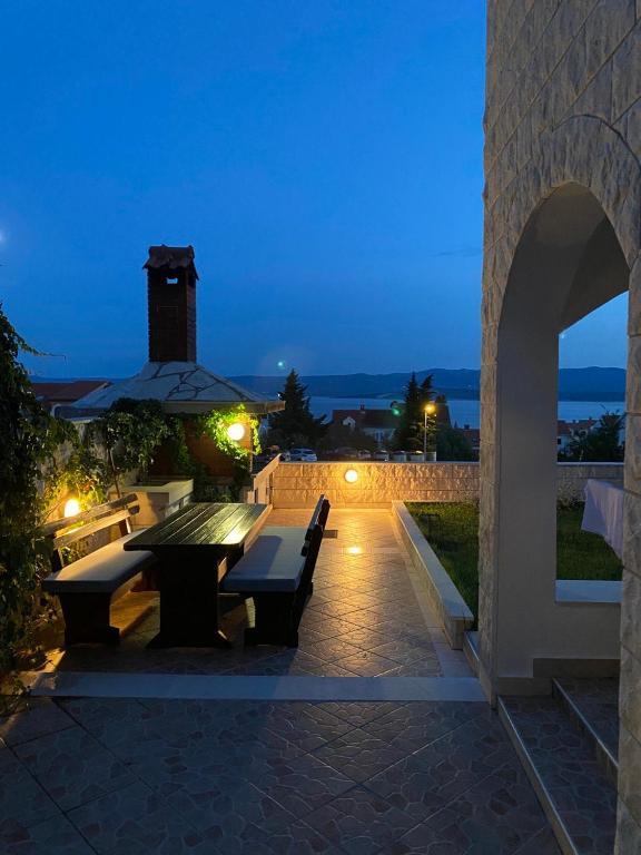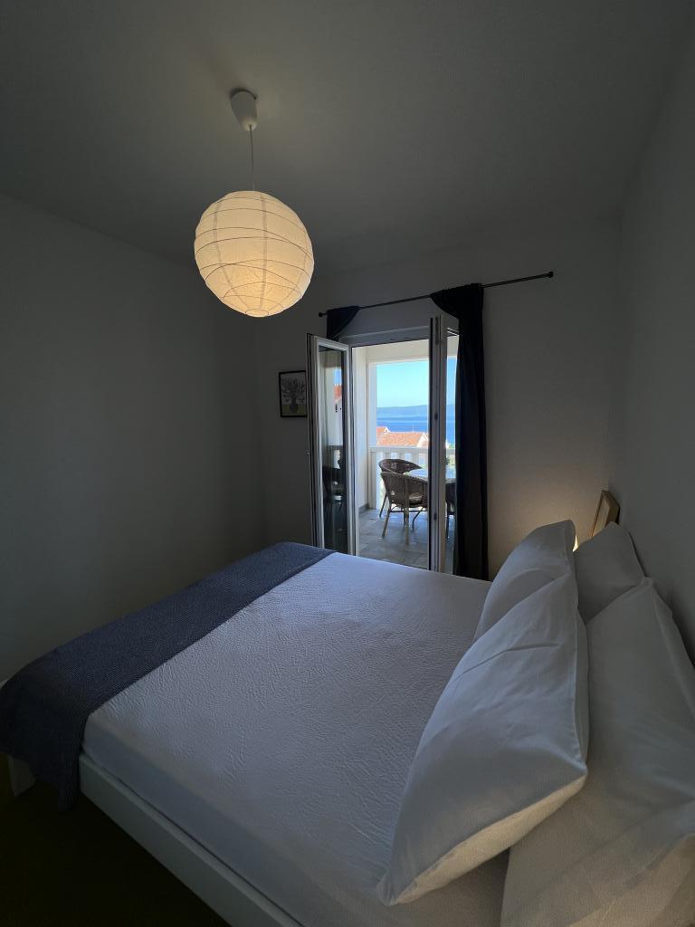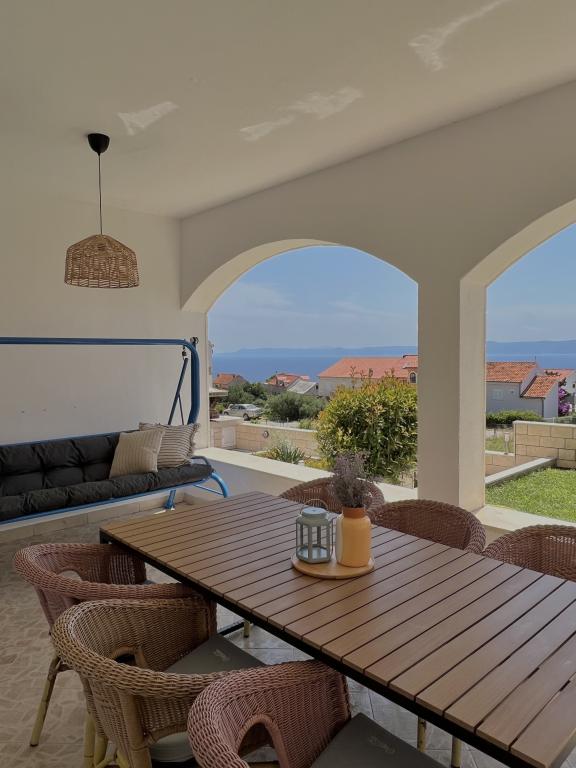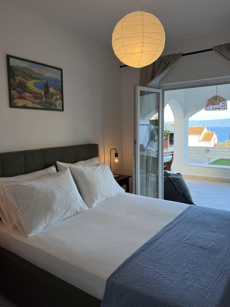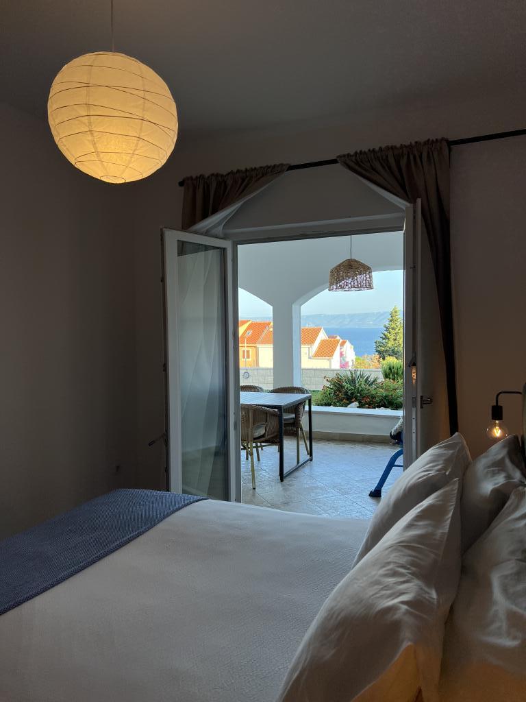Huset er beliggende midt i Bol, men på en let forhøjet position, så det er ude af byernes menneskemængde og uundgåelige parkeringskaos, men stadig kun 6 minutters let gåtur til Bols gamle centrum, 15 min. gåtur til den vidunderlige "Gyldne Krig". Huset har en stor gårdhave med udsigt over havet. I gården er der en pejs til grillning, som kan nydes af alle husets gæster.