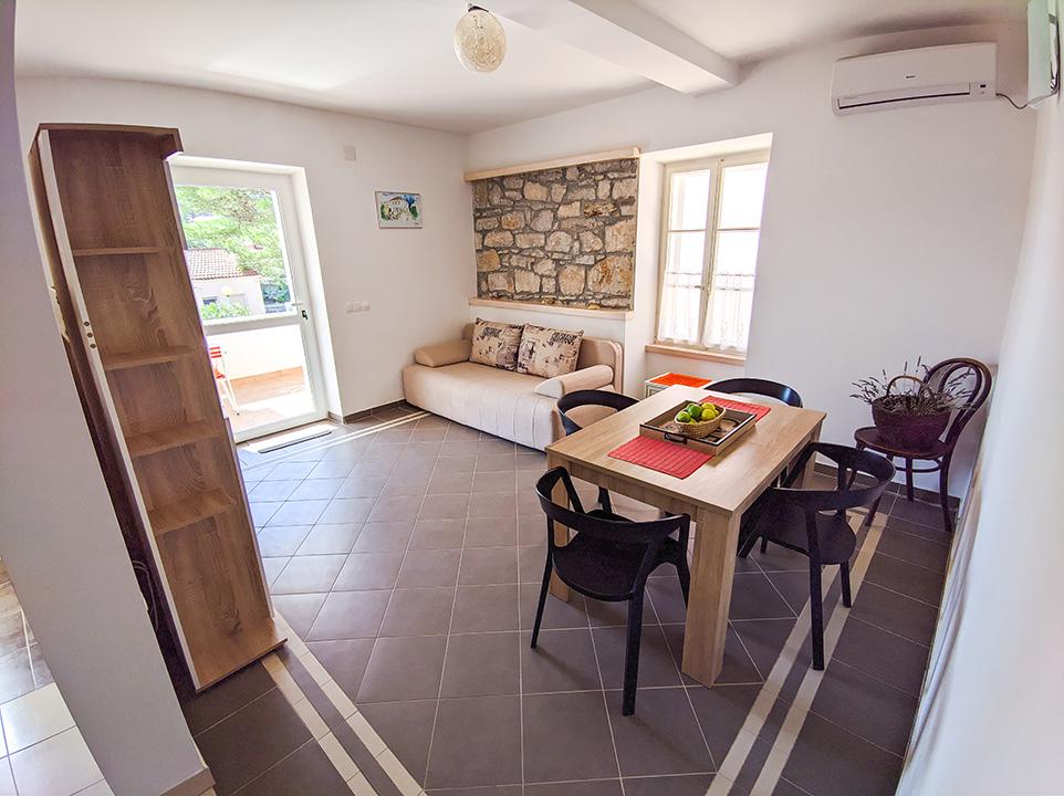 Apartments TEREZIJA er beliggende i centrum af Božava på Dugi otok, cirka 40 meter fra havet (vandfronten). Der er tre boligenheder (lejligheder) i huset. Alle lejligheder har en sikker parkeringsplads, separat indgang, køkken, rummelig stue, soveværelse, badeværelse, aircondition, satellit-tv, wi-fi internet og terrasse (balkon). Fra alle terrasser kan du se havet, det meste af Božava-dalen og fjerne øer.
