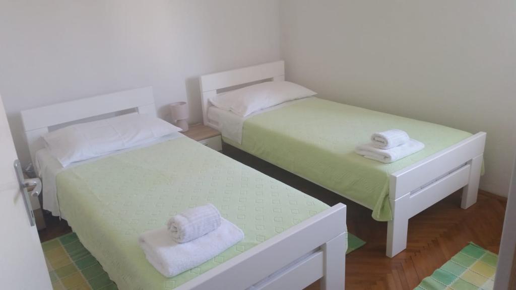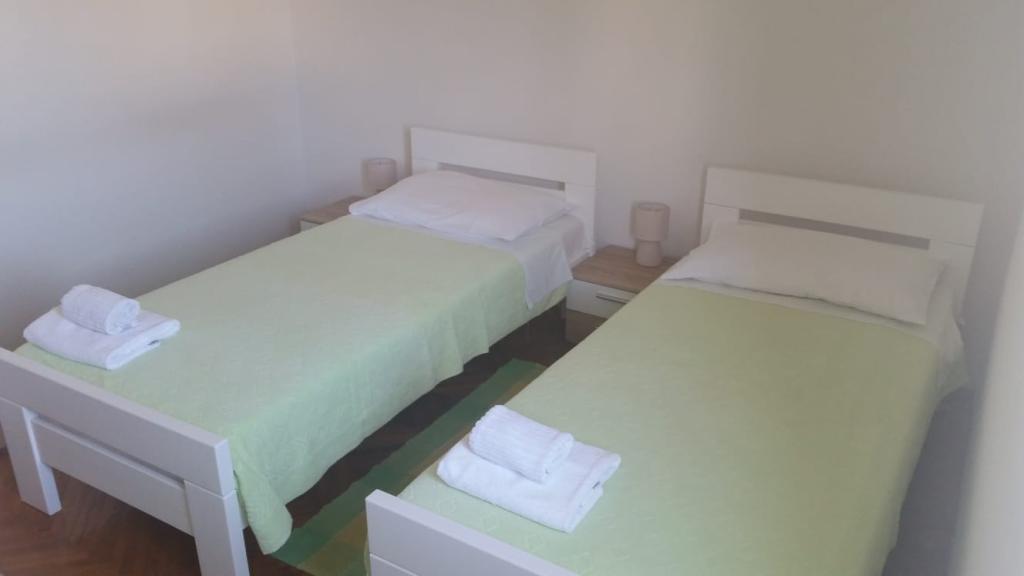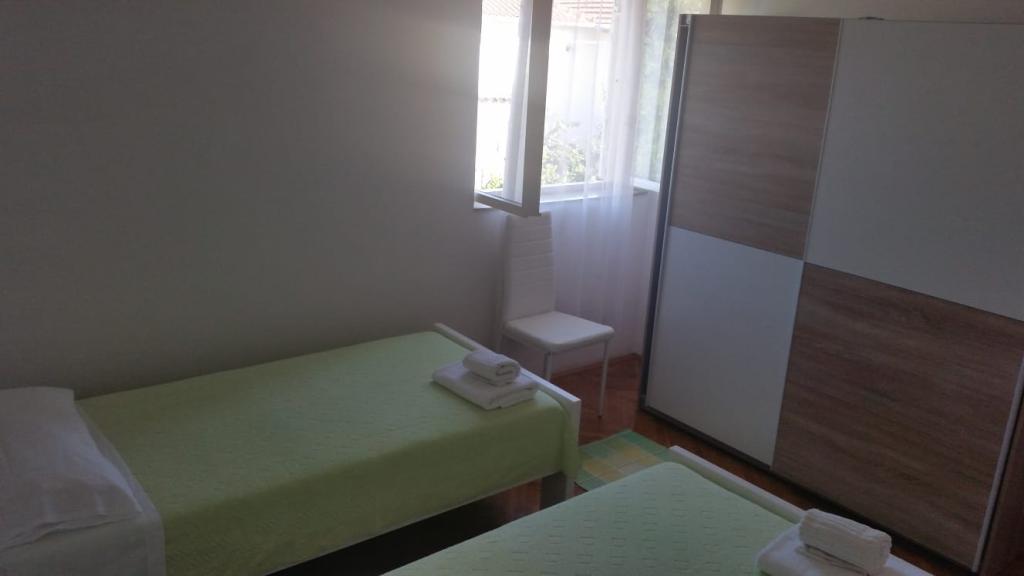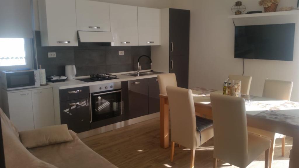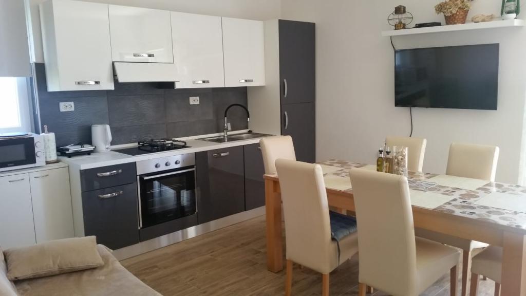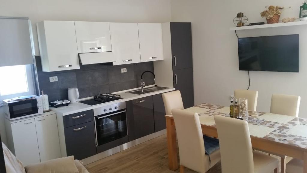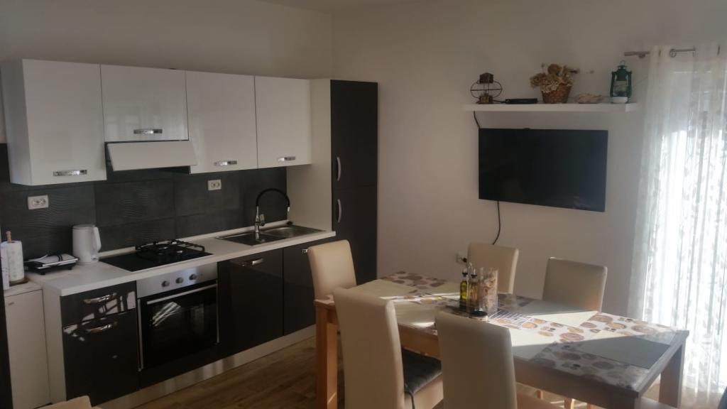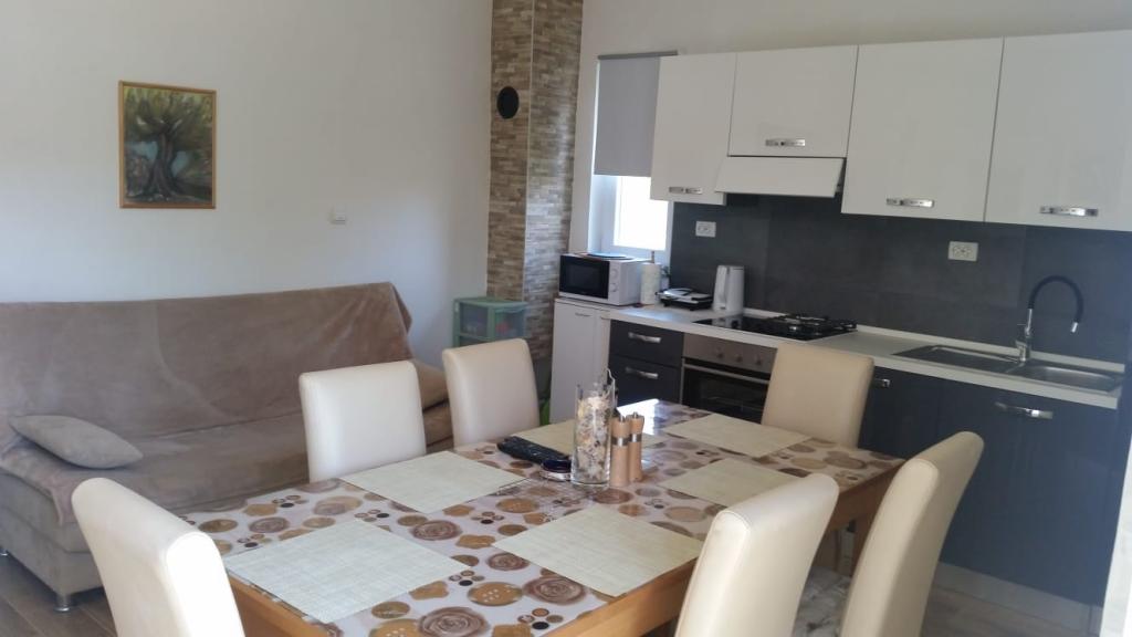 Lejligheden ligger i Brbinj på Dugi otok, 10 meter fra havet, på 1. sal og har en terrasse med udsigt over havet og solnedgangen. To restauranter ligger i nærheden af lejligheden. Ejendommen ligger 3 minutters gang fra færgehavnen. Lejligheden består af køkken med stue, tre soveværelser, badeværelse, ekstra toilet og terrasse. Lejligheden er fuldt udstyret og har aircondition. Køkkenet er moderne og nyt, og er udstyret med opvaskemaskine, komfur, ovn, køleskab med fryser og mikroovn. Spisestuen er rummelig med stort spisebord og sofa samt udgang til terrassen. I den rummelige hall er der et stort vægskab, et nyistandsat badeværelse med bruseniche samt tre soveværelser, der er rummelige og udstyret. Mulighed for at benytte den overdækkede grill i haven. . Du kan svømme lige foran lejligheden. Alle andre smukke strande i Dugi otok kan nås på 10-15 minutter i bil. Du kan parkere foran huset.