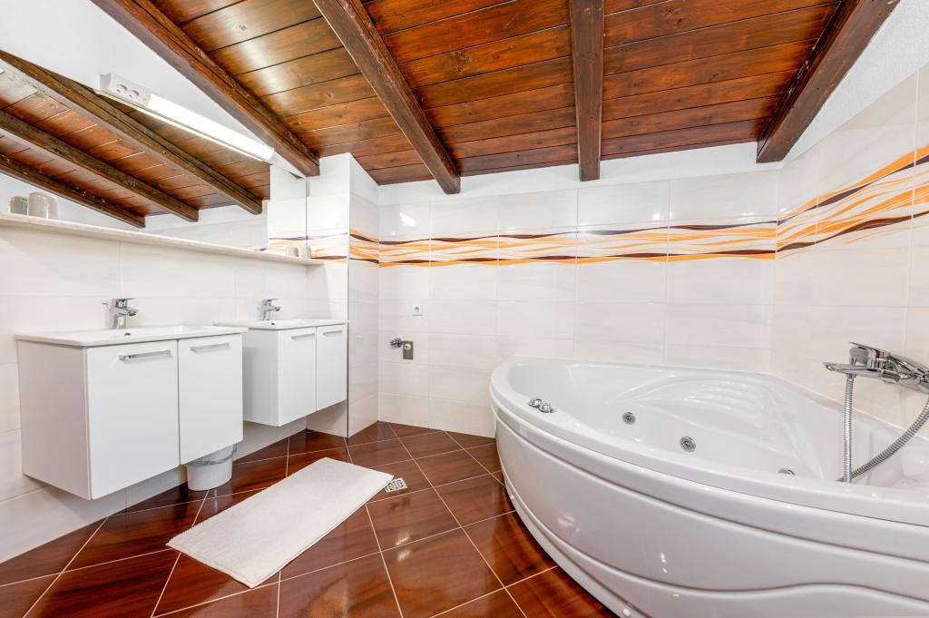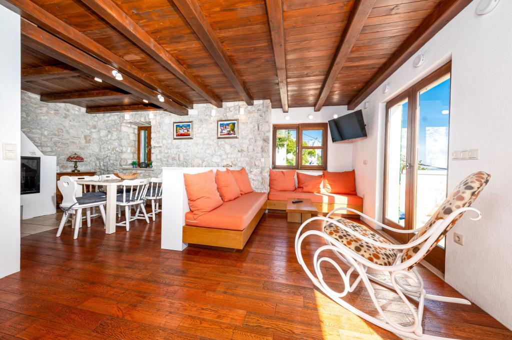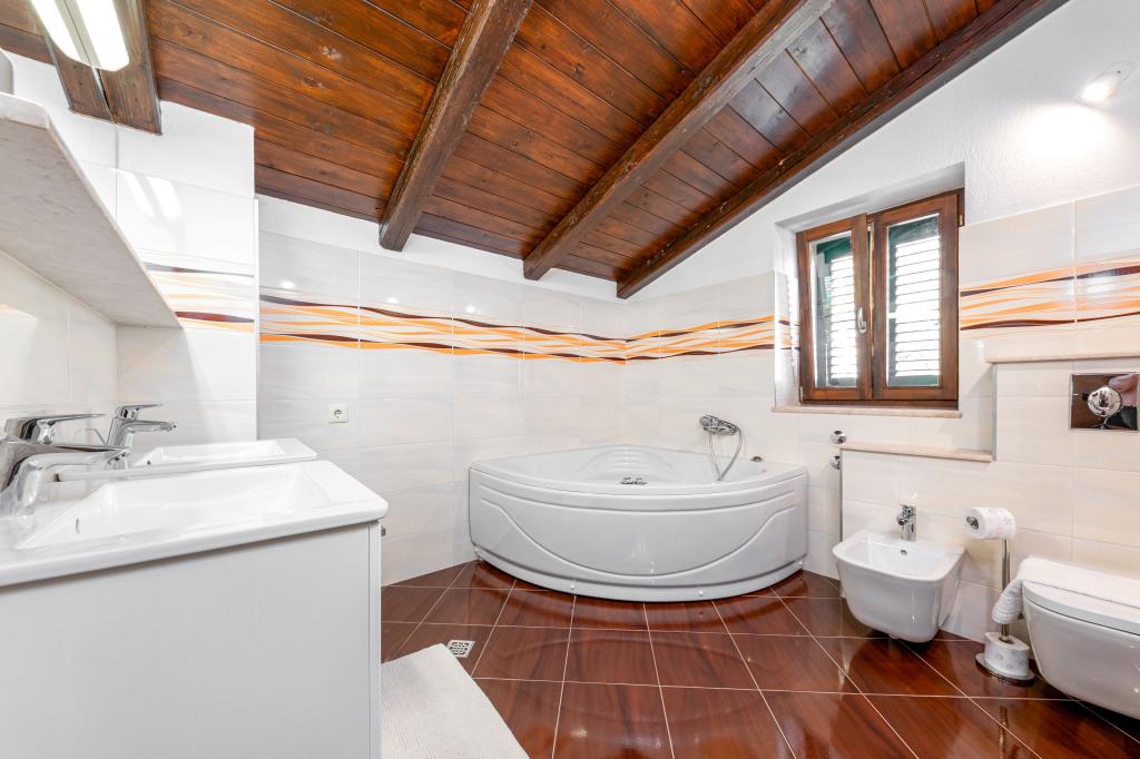 Velkommen til vores rummelige og charmerende lejlighed beliggende i et privat hus med i alt tre lejligheder - et ideelt valg til en fredelig og afslappende ferie i en ægte dalmatisk atmosfære. Den 115 m² store lejlighed tilbyder alt, hvad du behøver for et behageligt ophold. Den består af to komfortable soveværelser, et fuldt udstyret køkken forbundet med en rummelig stue, to badeværelser (hvoraf det ene har et hydromassagebadekar) og et ekstra separat toilet. Rustik indretning og omhyggeligt udvalgte detaljer skaber en varm atmosfære og en autentisk dalmatisk atmosfære. Huset ligger i et kaskadelignende terræn, og trapper fører til den fælles swimmingpool. Poolen ligger på en rummelig terrasse udstyret med liggestole og parasoller, perfekt til solbadning og udsigten. På grund af trappen og terrænets konfiguration er lejligheden ikke egnet til handicappede eller personer med begrænset mobilitet. Gæster har adgang til privat parkering lige ved siden af huset (hvilket er en stor fordel i sommermånederne). Vi ser frem til din ankomst!