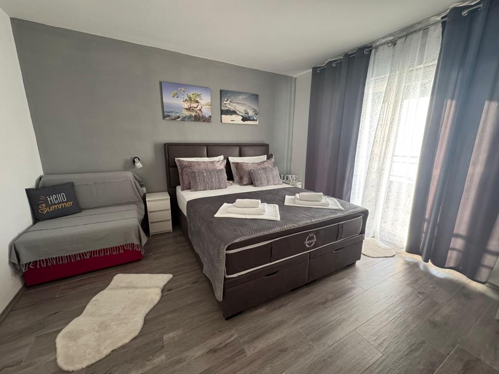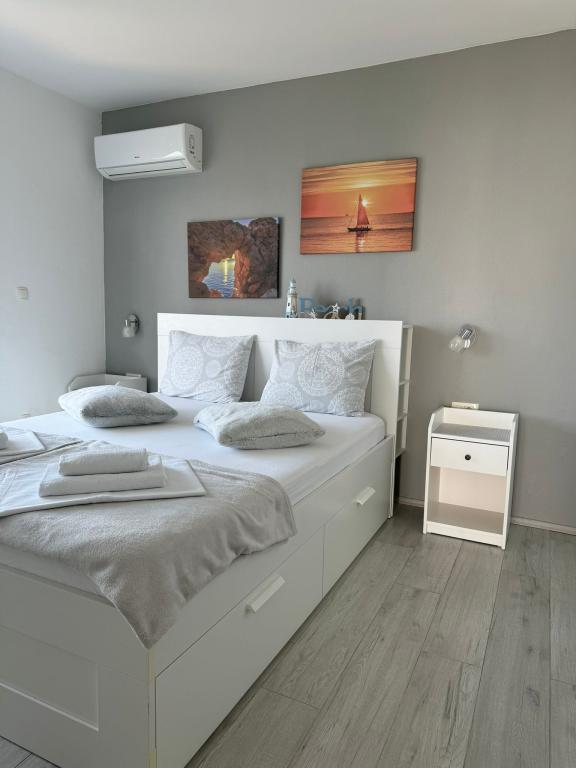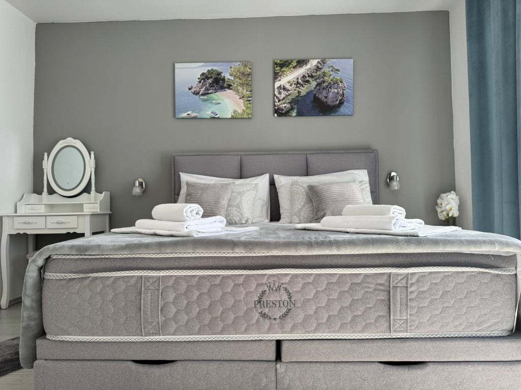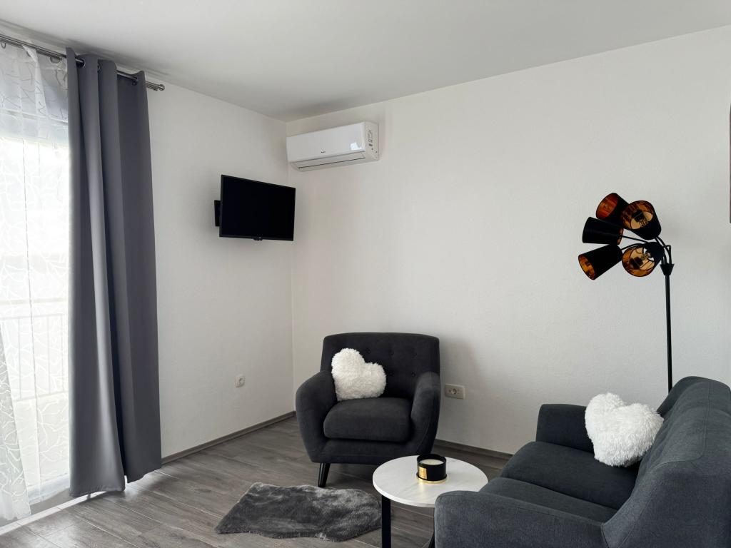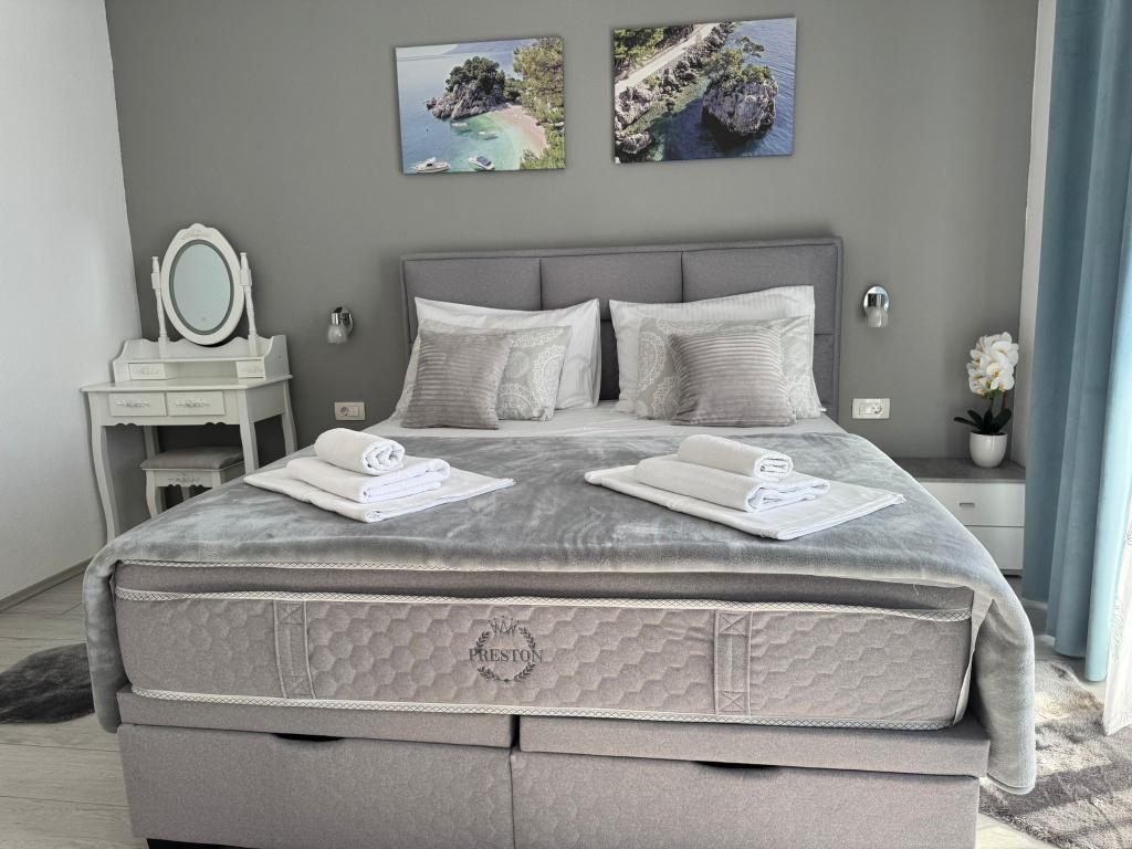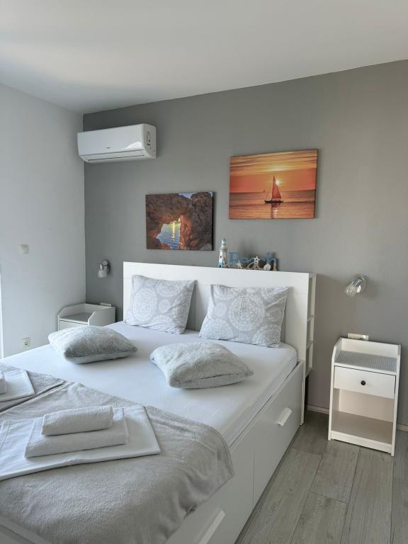 VILLA Orada omgivet af fyrreskov med udsigt over havet og de dalmatiske øer beliggende i en stille bugt Podcrkavlje i Donja Brela. 150 meter væk er de smukke strande, hvor alle kan finde noget for sig selv fra restauranter, caféer, cocktailbarer, souvenirs og ting til stranden til vandsport. Lejligheden ligger kun 10 minutters gang til mini markeder og rejsebureauer, som igen giver eventyrlystne rafting på Cetina floden nær byen, vandreture på bjerget skråning og dagsture med båd til nærliggende dalmatiske øer. Brela er unik for sin krystal blå hav, smukke strande og bugter, og er lige som sådan et ideelt sted for din ferie og venlige værter vil sørge for, at jeg føler sig trygge og tilfredse. Velkommen!