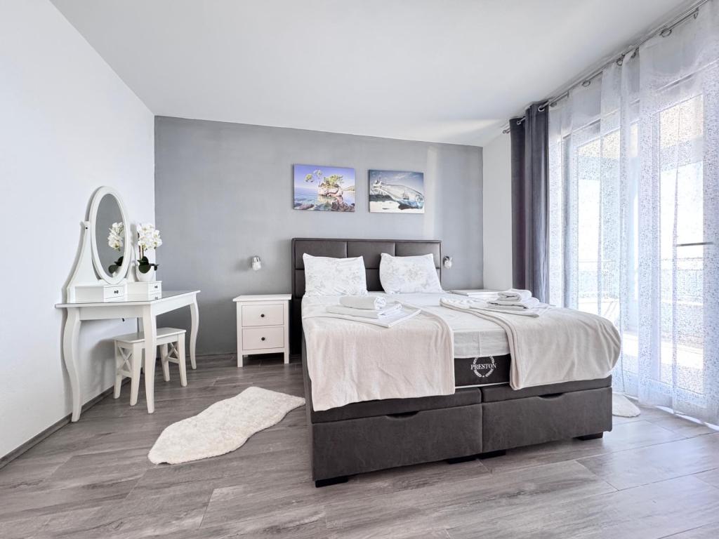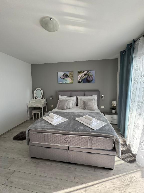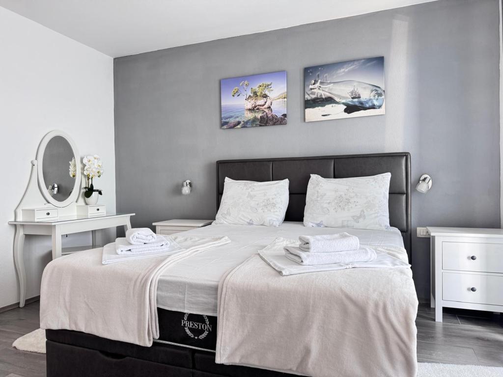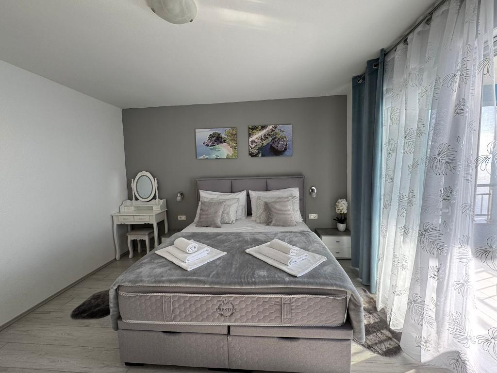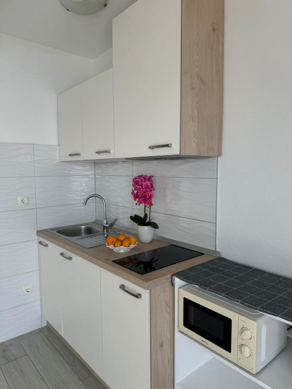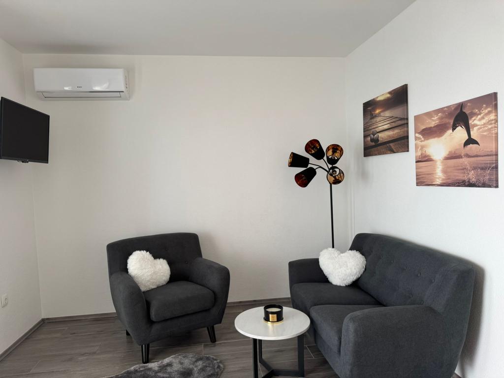 VILLA Orada omgivet af fyrreskov med udsigt over havet og de dalmatiske øer beliggende i en stille bugt Podcrkavlje i Donja Brela. 150 meter væk er de smukke strande, hvor alle kan finde noget for sig selv fra restauranter, caféer, cocktailbarer, souvenirs og ting til stranden til vandsport. Lejligheden ligger kun 10 minutters gang til mini markeder og rejsebureauer, som igen giver eventyrlystne rafting på Cetina floden nær byen, vandreture på bjerget skråning og dagsture med båd til nærliggende dalmatiske øer. Brela er unik for sin krystal blå hav, smukke strande og bugter, og er lige som sådan et ideelt sted for din ferie og venlige værter vil sørge for, at jeg føler sig trygge og tilfredse. Velkommen!