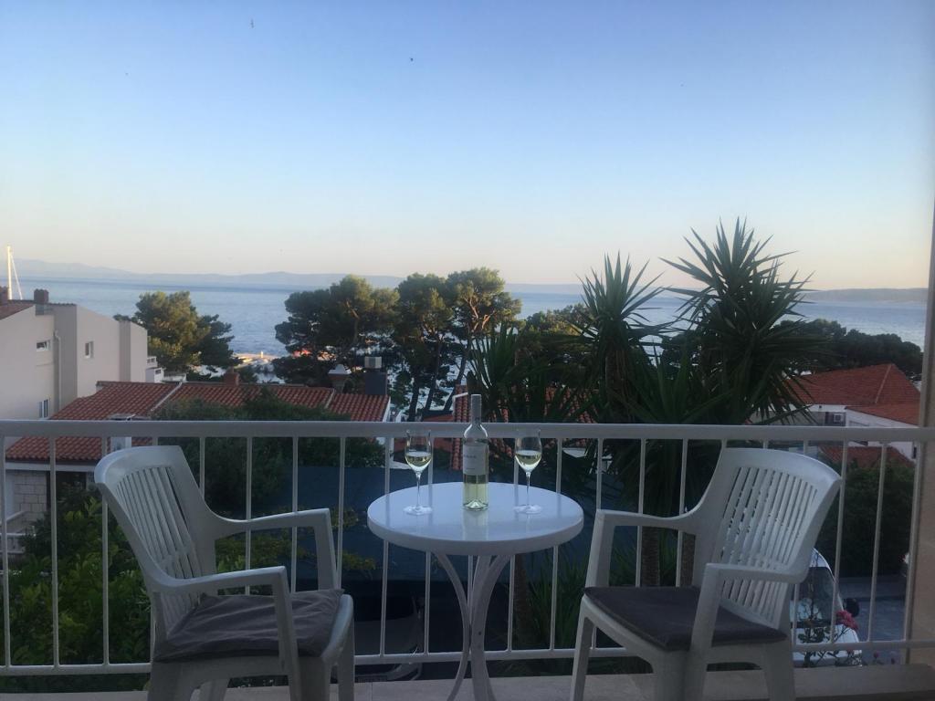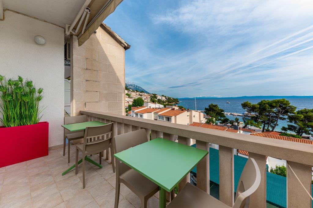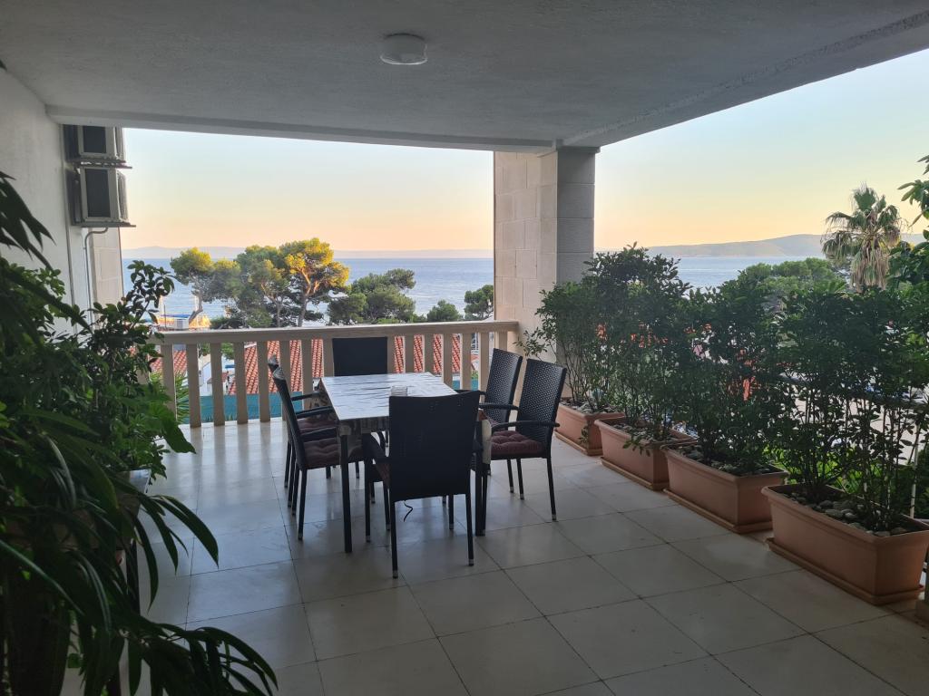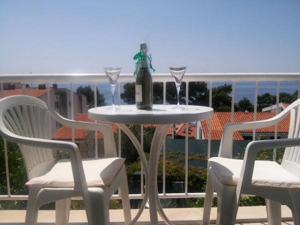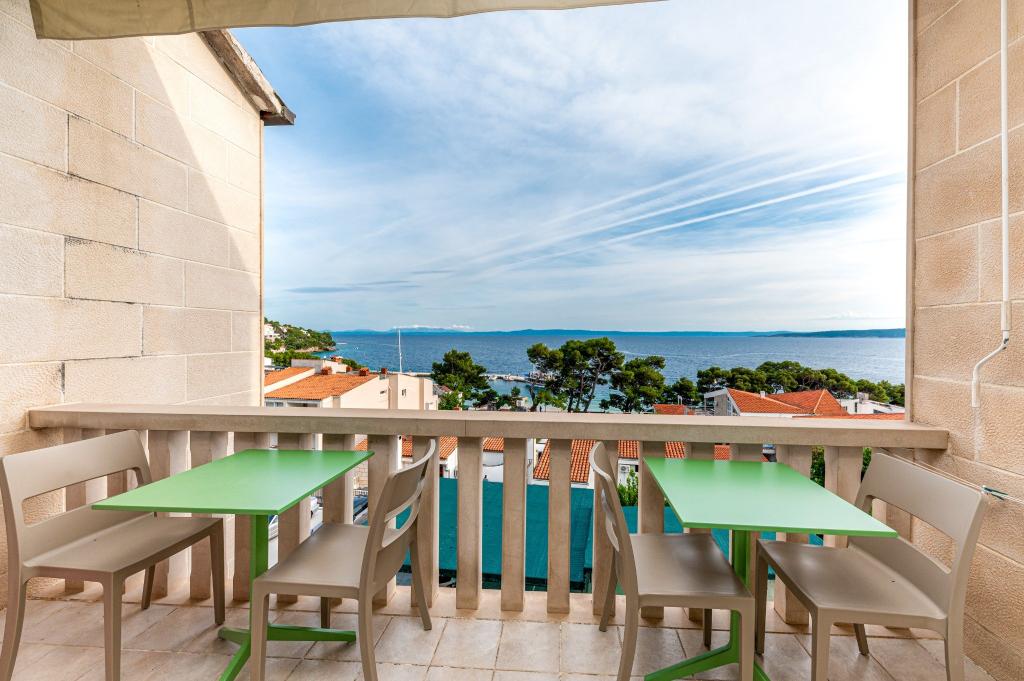 Vores hus ligger i Brelas centrum, mindre end 1 minut (30 m) fra stranden og bymidten. Huset ligger i umiddelbar nærhed af adskillige restauranter og caféer, posthus, havn, marked og apotek. Der er fire lejligheder til rådighed for 2-8 personer. Om morgenen kan du nyde din morgenkaffe på terrassen med udsigt over havet, som er inden for rækkevidde, og kun få skridt væk er den smukke stenstrand.