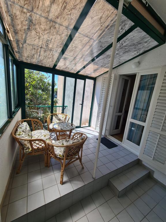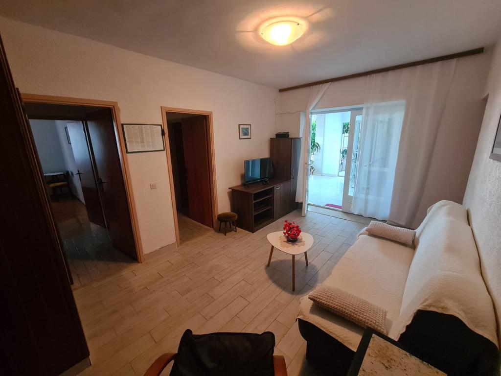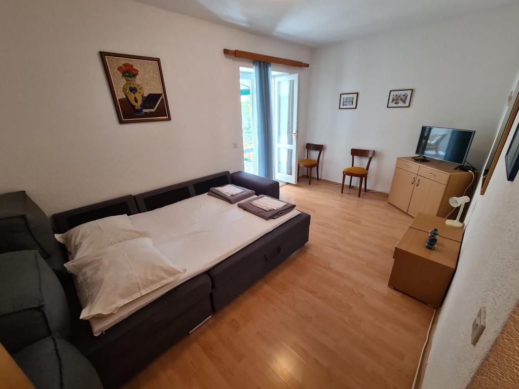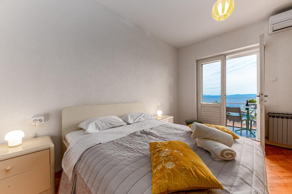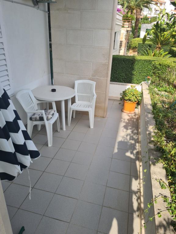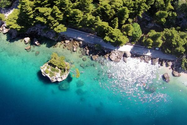Vores hus ligger i Brelas centrum, mindre end 1 minut (30 m) fra stranden og bymidten. Huset ligger i umiddelbar nærhed af adskillige restauranter og caféer, posthus, havn, marked og apotek. Der er fire lejligheder til rådighed for 2-8 personer. Om morgenen kan du nyde din morgenkaffe på terrassen med udsigt over havet, som er inden for rækkevidde, og kun få skridt væk er den smukke stenstrand.