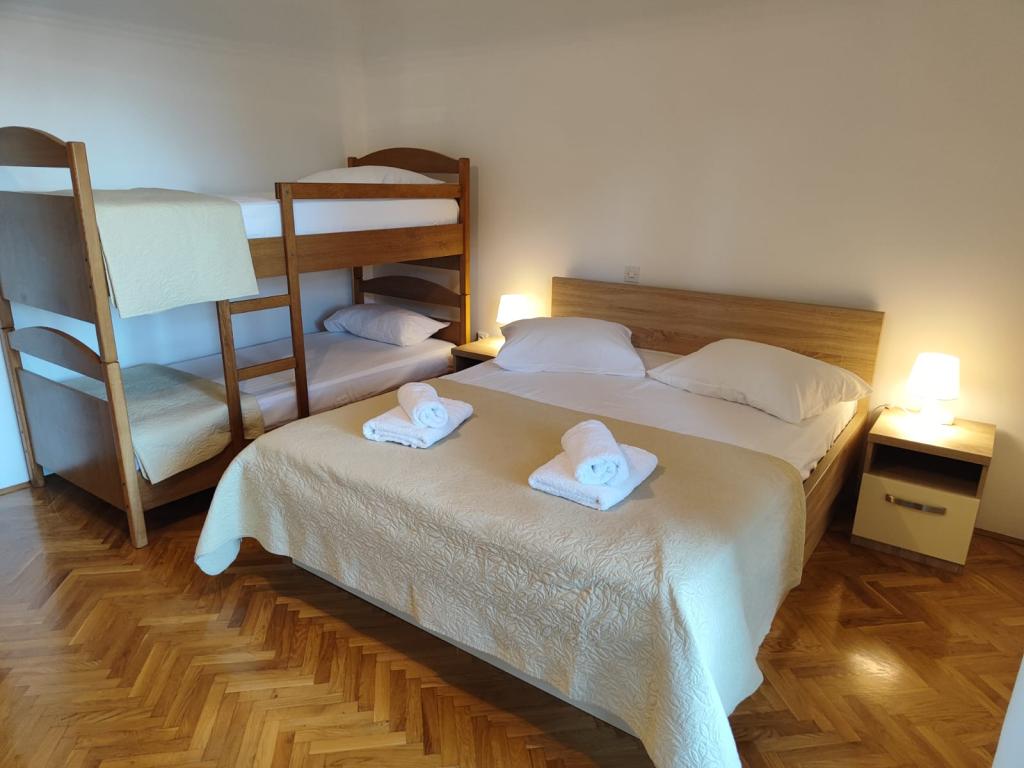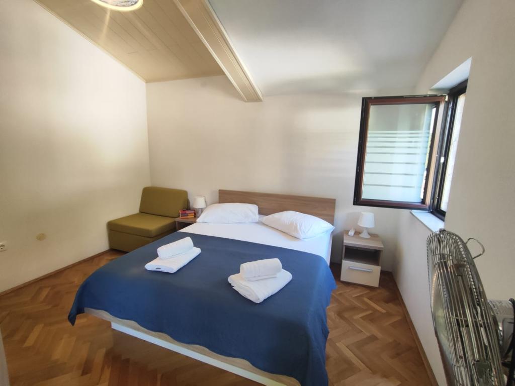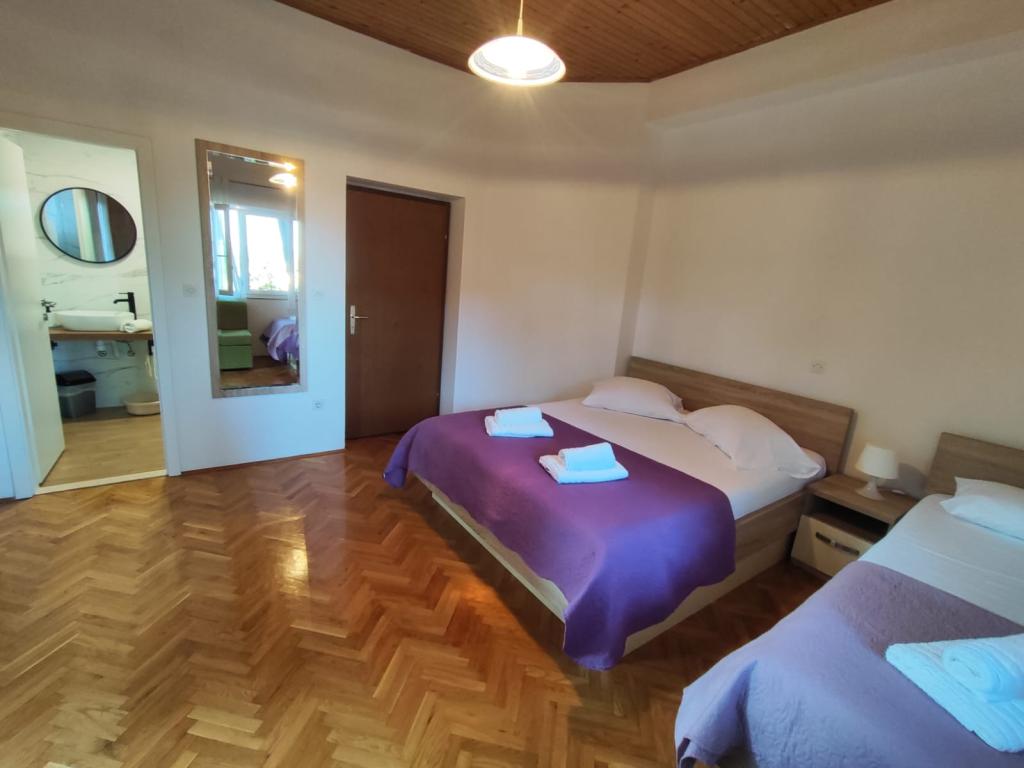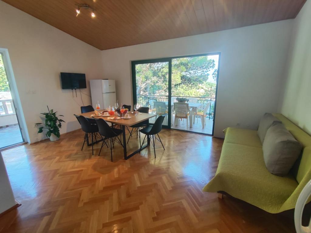 Vores lejligheder er beliggende i en rolig del af Brela, perfekt til en familieferie og fuldstændig afslapning. Beliggende blandt duftende fyrretræer tilbyder de en fantastisk udsigt over det krystalklare Adriaterhav og Biokovo-bjerget. Lejlighederne er moderne udstyret. Hvert værelse har eget badeværelse, balkon, aircondition, og håndklæder og sengetøj er inkluderet. Det fuldt udstyrede køkken (komfur, køleskab, komplette tallerkener og bestik) giver dig mulighed for at tilberede måltider i en behagelig hjemlig atmosfære. Hver lejlighed har en rummelig terrasse, TV, WiFi, parkering og mulighed for at bruge en grill til uforglemmelige aftener ved havet. Huset ligger på en bakke, kun 100 meter fra stenstrande, ideel til svømning og solbadning. Brela er kendt for sin naturlige skønhed, lange promenade langs kysten og den legendariske Brela-sten. Derudover er der i nærheden adskillige restauranter med lokale specialiteter, caféer ved havet og muligheder for forskellige sports- og rekreative aktiviteter, såsom vandreture, cykling og vandsport. ️