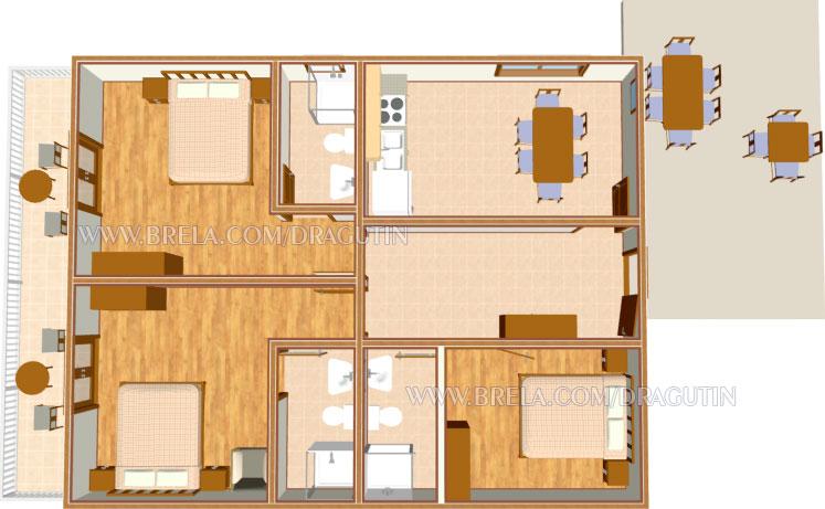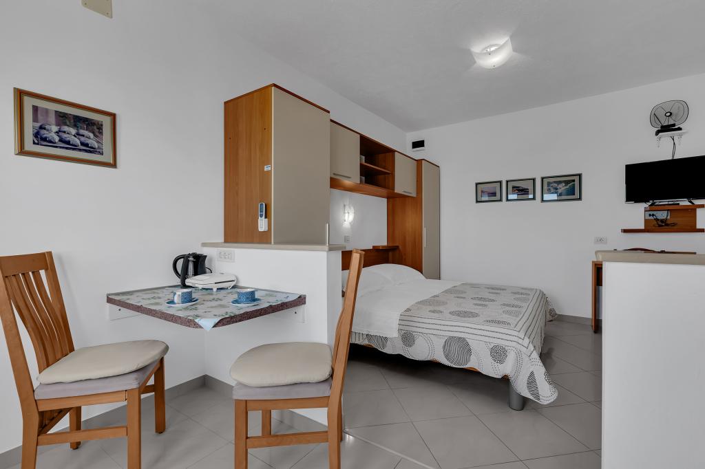Lejlighed A2 med et soveværelse ligger i husets stueetage, har 25 m2 og 5 m2 altan. Det er 10 meter fra havet... Lejlighed A6 ligger på husets anden sal. Det har 90 m2, 15 m2 altan og 20 m2 terrasse. Det ligger 20 meter fra havet. Den maksimale kapacitet er til 7 personer.
