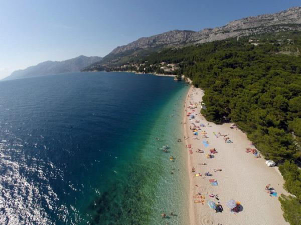 De smukkeste strande jeg nogensinde har set, og det bedste er, at de er mindre end minutters gang fra lejlighederne. Apartment havde vi var meget rart, meget godt udstyret, og med en smuk udsigt. Vi kommer igen næste år, ikke mindst på grund af vores smukke og venlige vært Edita! Hilsen fra Ungarn !!