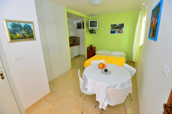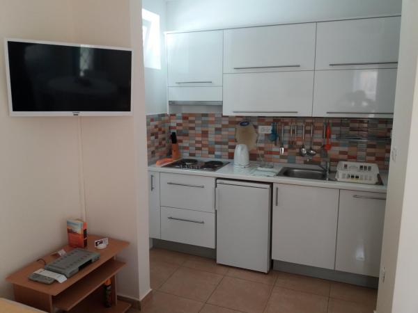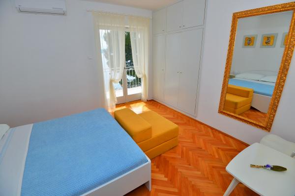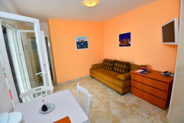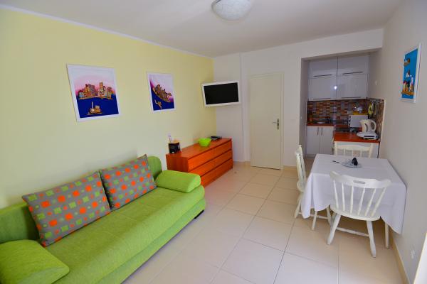Store placering og stor værtinden, Mrs. Edita og hendes mor, der arbejder fantastiske kager. Lejligheden har en fantastisk havudsigt og en stor overdækket terrasse i skyggen, og hvis du vil have sol på altanen. Lejligheden er nyrenoveret, inde du har alt hvad du behøver på ferie. Børn nød, fordi det er rum virkelig nok til at spille på terrassen og i lejligheden. I nærheden er også mange smukke strande. Det er rart, at alle de legetøj, og alle på stranden kan du lade på stranden i et separat rum. Butikken er helt tæt. Om aftenen kan du gå langs kysten. Vi nyder det, og vi vender tilbage næste år.