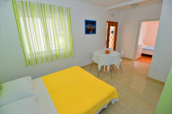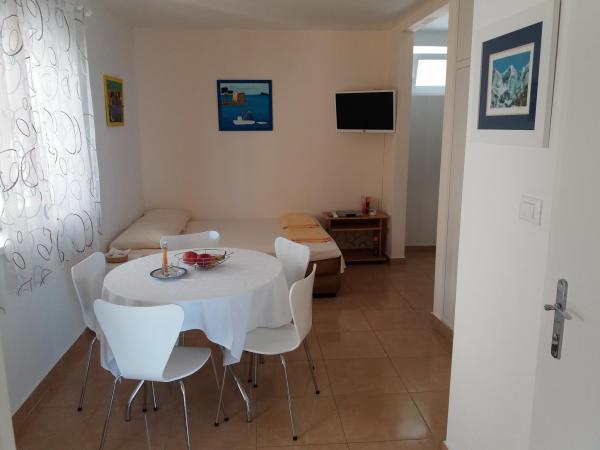 Lejlighederne er beliggende i et meget smukt sted. Med en enorm balkon med en fantastisk udsigt over havet og øerne. Silence giver dig mulighed for at nyde resten. Værelserne er hyggelige og meget lyse, er alt gjort for din komfort. Lejligheden har alt til en ferie ved havet: paraplyer, måtter, luftmadrasser, svømmefødder og maske for dykning, børn 's oppusteligt legetøj, stole. Nær lejlighederne er der en restaurant "Mediteran " med kroatiske køkken. Lækker! Denne lejlighed er alle indstillet for et behageligt og mindeværdigt ophold. Enjoy! Særlig tak til vidunderlige værter: Lenka, Edita og Zvonko!