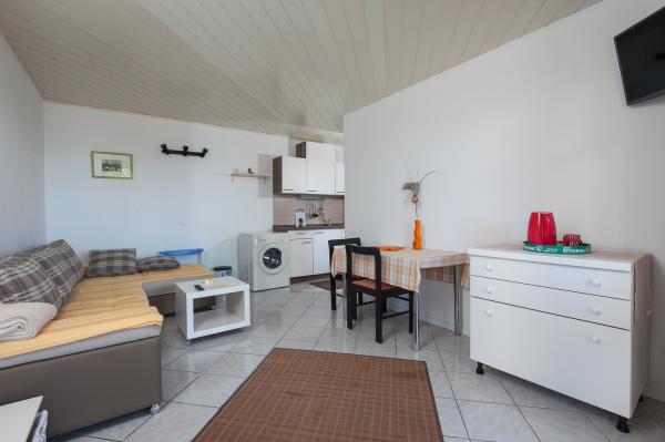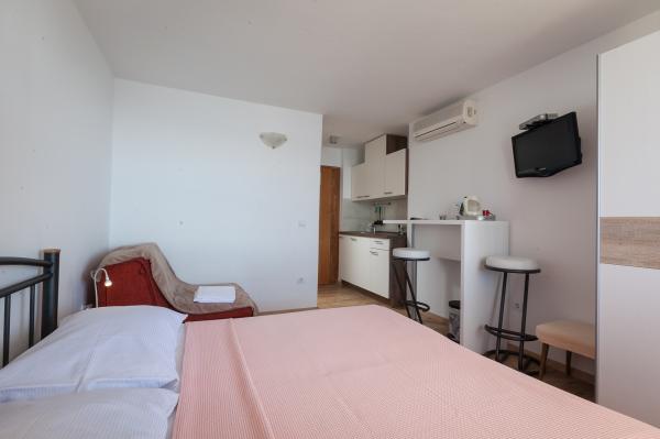 Jeg anbefaler Lela-lejligheden. Den har et værelse med tekøkken og et fuldt udstyret badeværelse. Balkonen har udsigt over havet. Den er tæt på stranden, og beliggenheden er fantastisk. Ejerne er meget venlige. Med venlig hilsen, Magdalena fra Polen