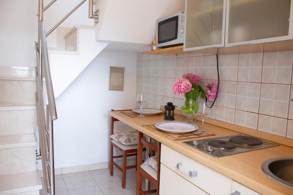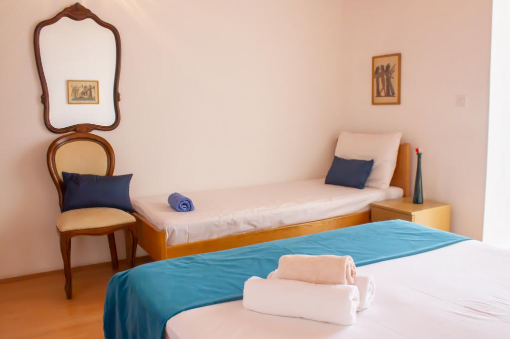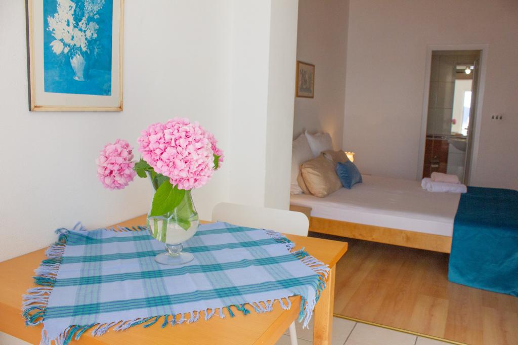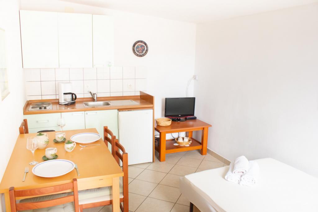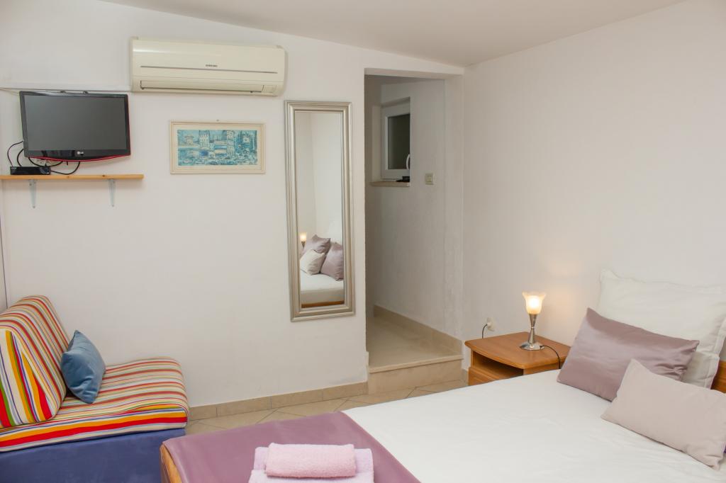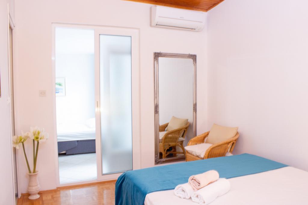 Til at begynde med vil jeg nævne, at der er 230 trin fra lejligheden til stranden. En anden ting er parkering. Ankom til lejligheden, og damen siger, lad os parkere vores køretøj bag de andre gæsters køretøjer. På mit spørgsmål, hvad hvis den person, vi parkerede, skal ud med bilen, svarer hun, at hun vil ringe til os for at flytte hendes bil, så andre gæster kan komme ud. Uacceptabelt. En anden uacceptabel ting er værtens indrejse i lejligheden, da vi ikke var der, selvfølgelig gik de ind for at tjekke, om klimaanlægget virkede, fordi det er en dødsforbrydelse. Lejligheden ligger på loftet og der bliver frygtelig varmt indenfor, så aircondition er nødvendigt. Vi lod klimaanlægget køre i 2 timer, da vi var væk, og damen kom for at advare os om, at det skulle vi ikke gøre, for hun kom ind i lejligheden, da vi ikke var der for at tjekke. Selve klimaanlægget fungerer dårligt, det vil sige, at det tager en time at sænke temperaturen med 2-3 grader. Man kan også mærke klimaanlægget, fordi det før sæsonen er for dyrt at købe en spray til 10 euro og rense klimaanlægget. Altandøren kan ikke lukkes helt fordi den er i stykker, fruen spurgte selvfølgelig hvorfor den ikke var lukket helt når hun var på patrulje i vores fravær. Badeværelset har hverken vindue eller ventilator, men gudskelov har det et skibsgulv i loftet, hvilket kan mærkes på dets forældede. Brusekabinen lækker på gulvet, fordi tætningerne omkring kabinen ikke er gode. Garderobeskabet er en arv fra en svunden tid, og bøjlerne i den er klistrede. Jeg kunne ikke få limen af mine hænder eller den t-shirt, jeg hang på den bøjle. Bestik ligger i en skuffe, der ikke har været rengjort i lang tid. TV'et er faktisk en skærm i funktionen af et fjernsyn. Som udgangspunkt anbefaler jeg ikke denne bolig, og jeg kan vedhæfte billeder som bevis på alt ovenstående. Vi besluttede at forlade lejligheden tidligt og lede efter mere passende bolig. Værterne besluttede ikke at returnere pengene for de dage, vi ikke var hos dem, og vi betalte for hele det planlagte ophold den første dag ved ankomsten. Fejl.