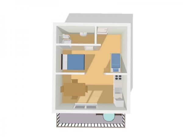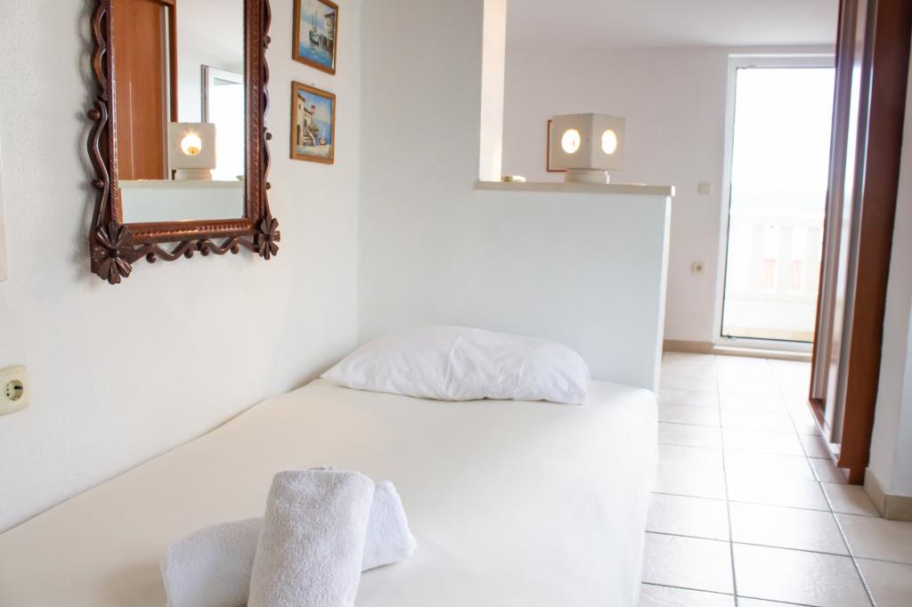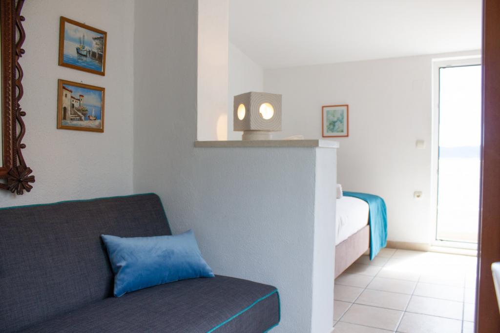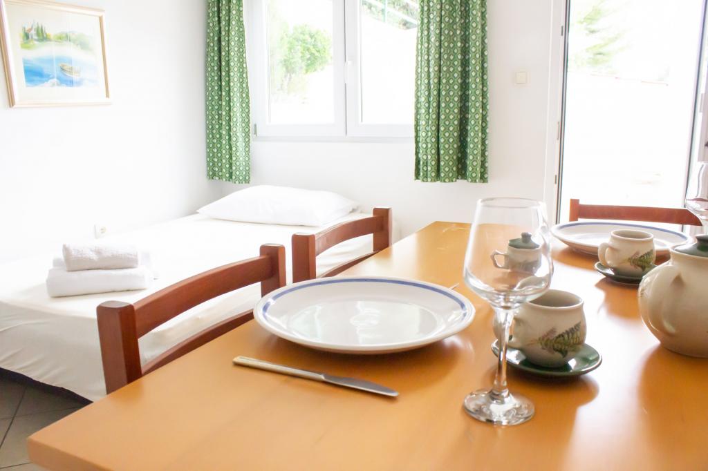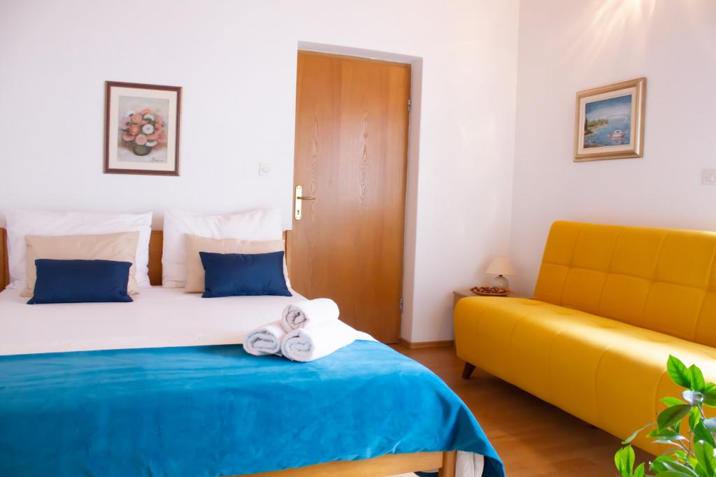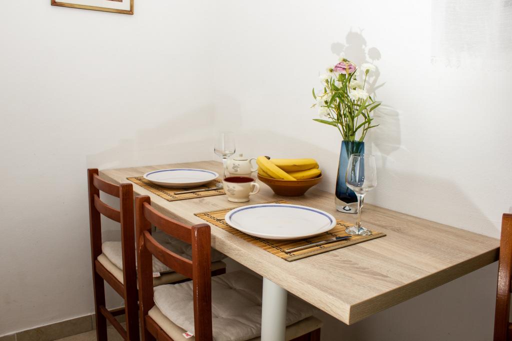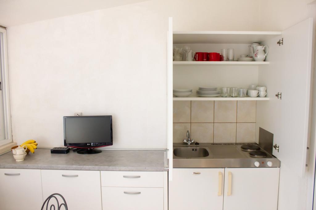 Til at begynde med vil jeg nævne, at der er 230 trin fra lejligheden til stranden. En anden ting er parkering. Ankom til lejligheden, og damen siger, lad os parkere vores køretøj bag de andre gæsters køretøjer. På mit spørgsmål, hvad hvis den person, vi parkerede, skal ud med bilen, svarer hun, at hun vil ringe til os for at flytte hendes bil, så andre gæster kan komme ud. Uacceptabelt. En anden uacceptabel ting er værtens indrejse i lejligheden, da vi ikke var der, selvfølgelig gik de ind for at tjekke, om klimaanlægget virkede, fordi det er en dødsforbrydelse. Lejligheden ligger på loftet og der bliver frygtelig varmt indenfor, så aircondition er nødvendigt. Vi lod klimaanlægget køre i 2 timer, da vi var væk, og damen kom for at advare os om, at det skulle vi ikke gøre, for hun kom ind i lejligheden, da vi ikke var der for at tjekke. Selve klimaanlægget fungerer dårligt, det vil sige, at det tager en time at sænke temperaturen med 2-3 grader. Man kan også mærke klimaanlægget, fordi det før sæsonen er for dyrt at købe en spray til 10 euro og rense klimaanlægget. Altandøren kan ikke lukkes helt fordi den er i stykker, fruen spurgte selvfølgelig hvorfor den ikke var lukket helt når hun var på patrulje i vores fravær. Badeværelset har hverken vindue eller ventilator, men gudskelov har det et skibsgulv i loftet, hvilket kan mærkes på dets forældede. Brusekabinen lækker på gulvet, fordi tætningerne omkring kabinen ikke er gode. Garderobeskabet er en arv fra en svunden tid, og bøjlerne i den er klistrede. Jeg kunne ikke få limen af mine hænder eller den t-shirt, jeg hang på den bøjle. Bestik ligger i en skuffe, der ikke har været rengjort i lang tid. TV'et er faktisk en skærm i funktionen af et fjernsyn. Som udgangspunkt anbefaler jeg ikke denne bolig, og jeg kan vedhæfte billeder som bevis på alt ovenstående. Vi besluttede at forlade lejligheden tidligt og lede efter mere passende bolig. Værterne besluttede ikke at returnere pengene for de dage, vi ikke var hos dem, og vi betalte for hele det planlagte ophold den første dag ved ankomsten. Fejl.