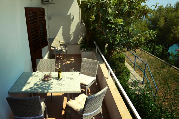 Moderne bolig med smuk udsigt over havet, anden række til havet (ca. 40 m). Lejlighed A4 1 / på 2. sal / er luksuriøst indrettet og beregnet til 4 personer med mulighed for en ekstra seng eller en barneseng. Det består af et køkken, to soveværelser (passer fra det ene værelse til det andet), hvert værelse har sit eget badeværelse. Hvert værelse har LCD, aircondition, WIFI. Lejlighed A4 2 /stue/ er en lejlighed på ca 70m2. Det er en moderne lejlighed med et stort køkken og spisestue med LCD, den har to moderne indrettede værelser, hver med sit eget badeværelse, aircondition. Værelserne har fælles stor terrasse-altan med smuk udsigt. Flere biler er parkeret i garagen. Muligheden for at bruge grillen. Markedet ligger ca 70 m fra lejligheden. Stranden ligger 30 m fra lejligheden. Restauranterne La Bomba, Mediteran og Ivandića dvori ligger 100 m derfra. Afstanden fra Makarska er 10 km. Studielejlighed A2 Rustical er en lejlighed beregnet til 2 personer, som ønsker en speciel og dejlig ferie og samtidig opleve et eventyr på traditionel dalmatisk vis. I det gamle Etnosel ŠOŠIĆI, som ligger kun cirka 300 m fra havet